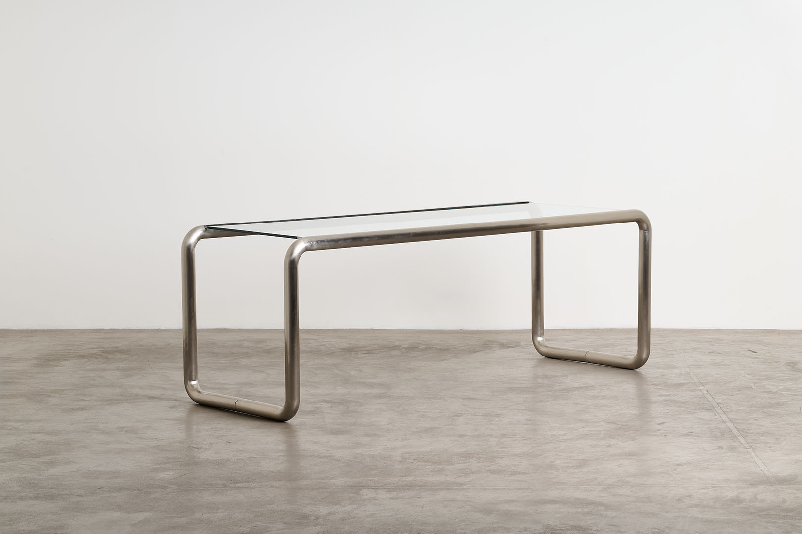 Yashar focuses the entire exhibition on a single material: metal. By dedicating the exhibit to this single theme, the display highlights the material’s versatile nature, featuring a wide array of finishes and techniques, including galvanized steel, aluminum, nickel-plated brass, chrome-plated steel, silver leaf and stainless steel sheets. The selection unites distinct historical periods, artistic movements and design languages under one cohesive narrative.