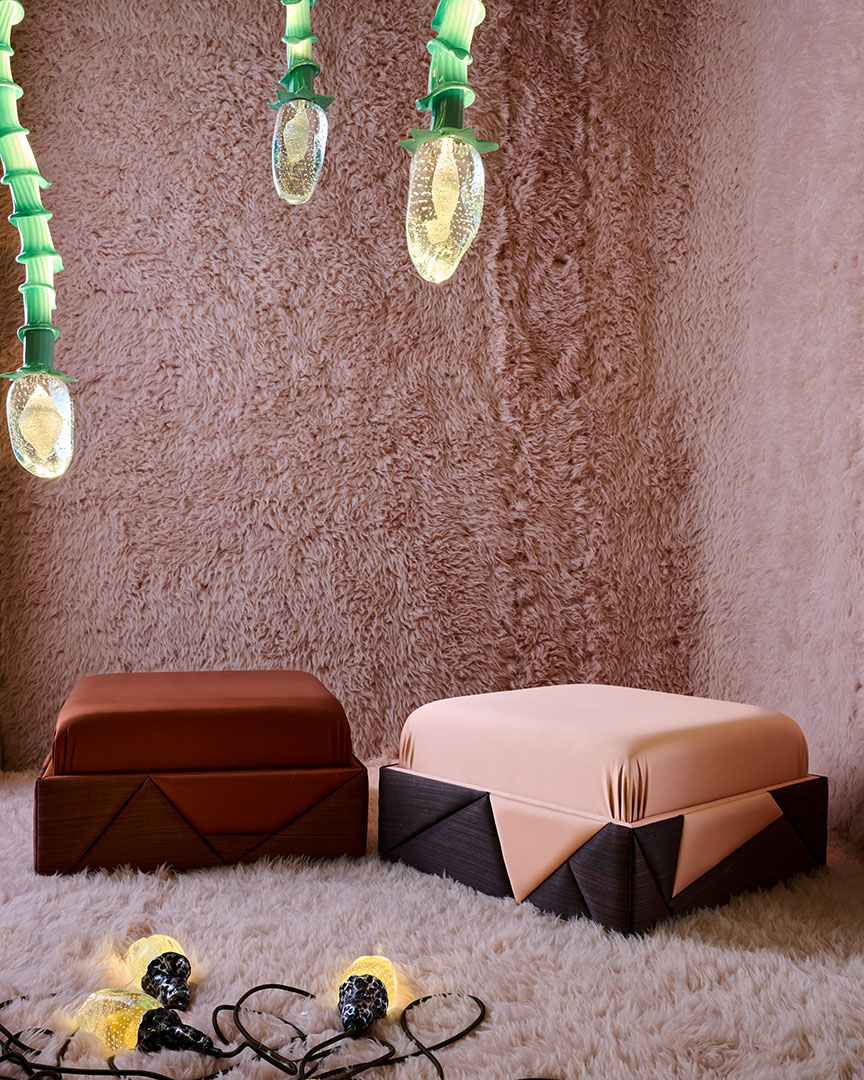 Vintage pieces by iconic designers Willy Rizzo, Zanine Caldas, Giuseppe Scapinelli, Gabriella Crespi, Karl Springer, James Mont, and Maria Pergay further enrich the exhibit. The curated selection by Nina Yashar, which includes sofas, table lamps, and paravents, seamlessly blends timeless design with the contemporary explorations of Pellizzari and Harush—an essential characteristic that defines both Nilufar and Yashar’s curatorial vision.