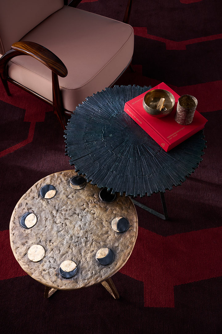 From celestial bodies to hand-painted surfaces, Filippo Carandini’s practice unfolds at the intersection of colour, artistic references, and refined craftsmanship. In Muse, he explores the symbolic imagery of the Sun and Moon through a series of bronze creations. Hand-modelled in clay and cast using traditional techniques, each object reveals the expressive nature of the metal alloy—either in its raw state or through nuanced patinas.