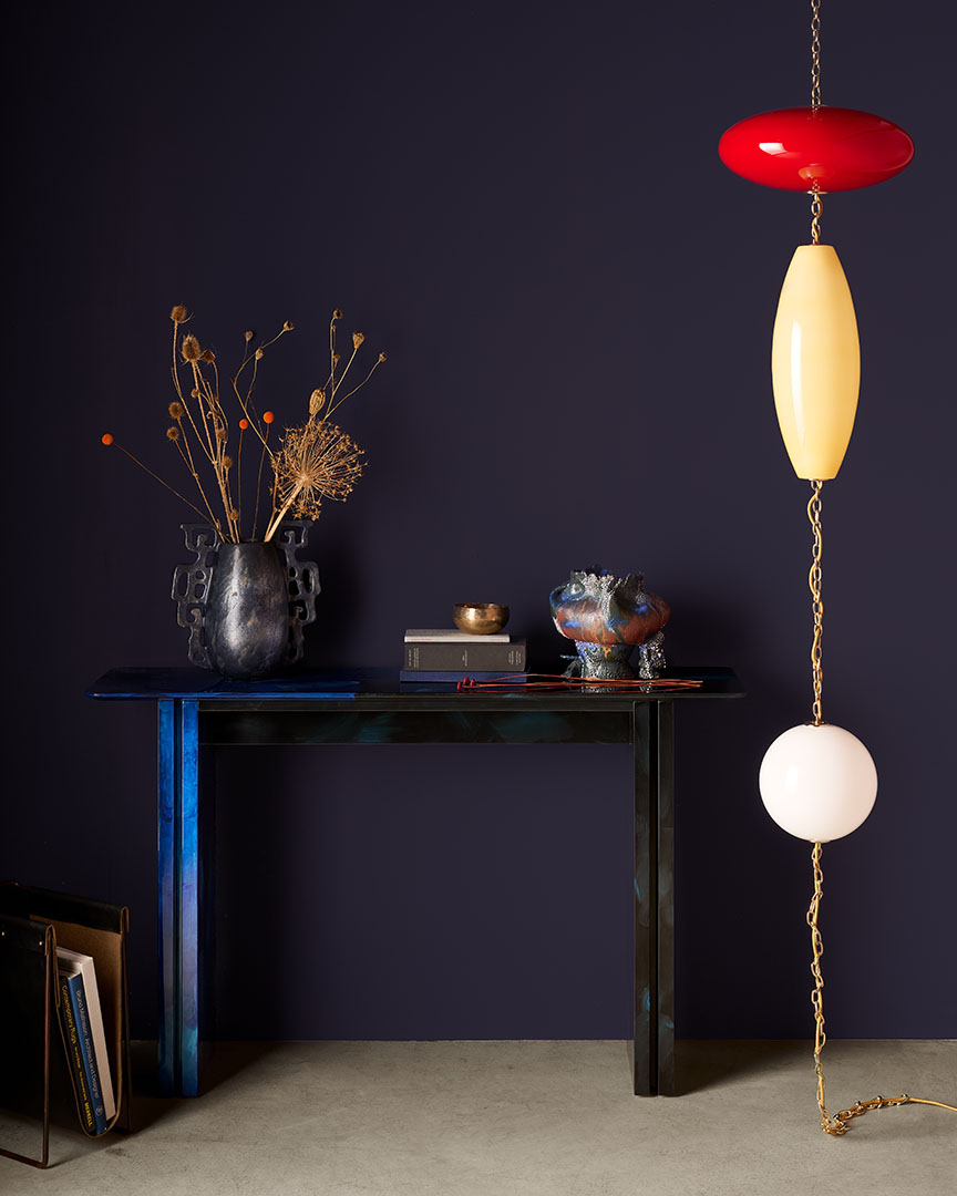 Building on this material and chromatic inquiry, Filippo Carandini’s furniture for Nilufar Edition unites his own creative identity with the brand’s vision, becoming a site of colour and material experimentation. Whether brushed in broad strokes or intricate dots, these high-gloss, vibrant pieces articulate a language that balances artistic expression and function, reflecting Nilufar’s ongoing exploration of contemporary design.