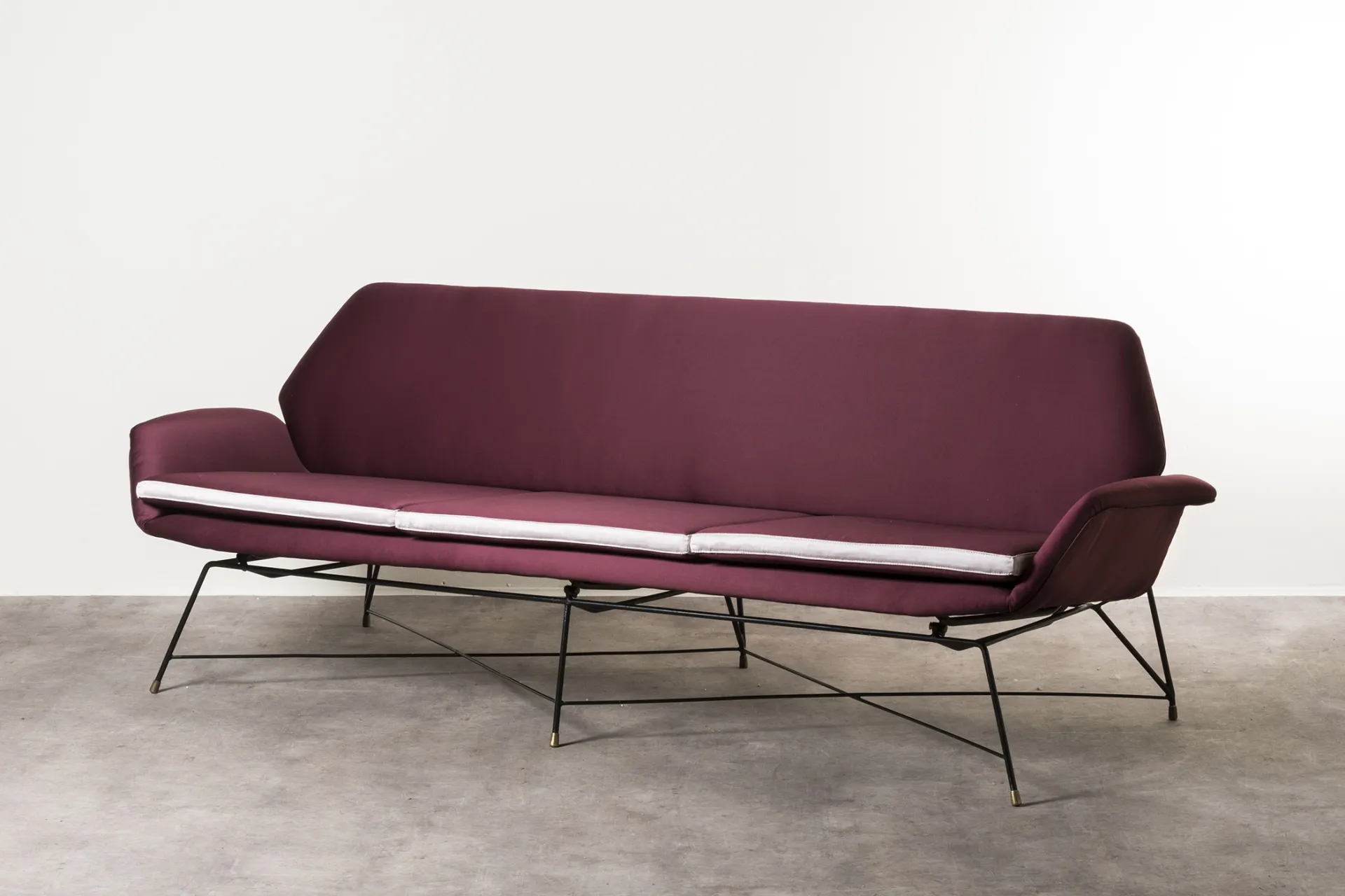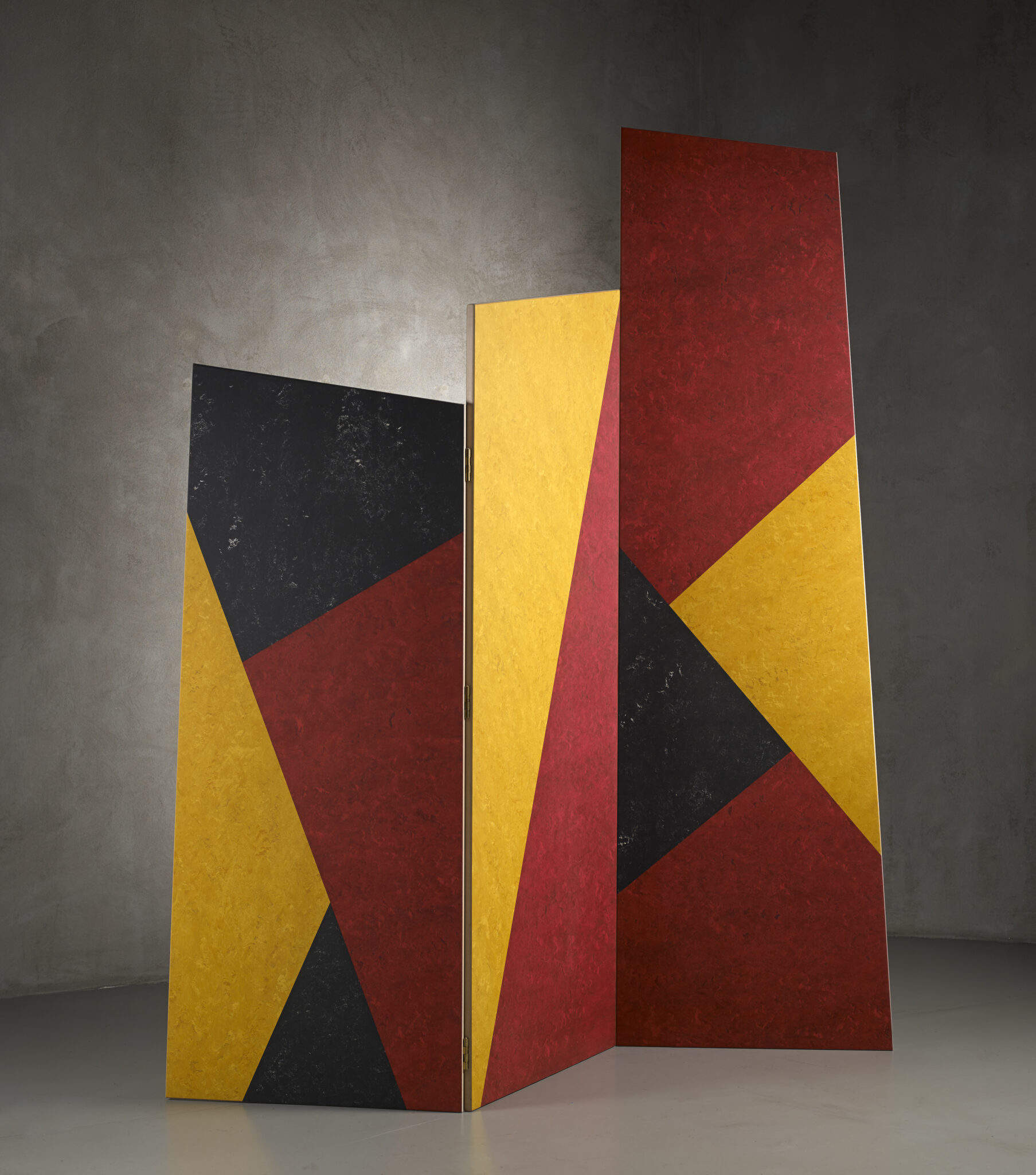 Bold colours and dynamic lines – characterizing precious armchairs by Jorge Zalszupin and contemporary room dividers by Martino Gamper up to the seatings designed by Augusto Bozzi in the ’50s and the “Crosette” floor lamp by Michael Anastassiades – encounter neat yet expressive silhouettes – among the armchairs by Geraldo de Barros, the “Zig Zag” lounge chairs by Estúdio de Arte Palma: LBB and Palanti, the “Proposal” bookcases by Vittorio Introini and an important sideboard by Jorge Zalszupin – audacious shapes – chasing across the “Minareto” sculpture by Ettore Sottsass, the “Tre bracci” floor lamp by Gino Sarfatti and the poligonal table by Joaquim Tenreiro. Framing the set are a Spättan carpet by Barbro Nilsson and two handwoven metallic carpets by colombian atelier Hechizoo.