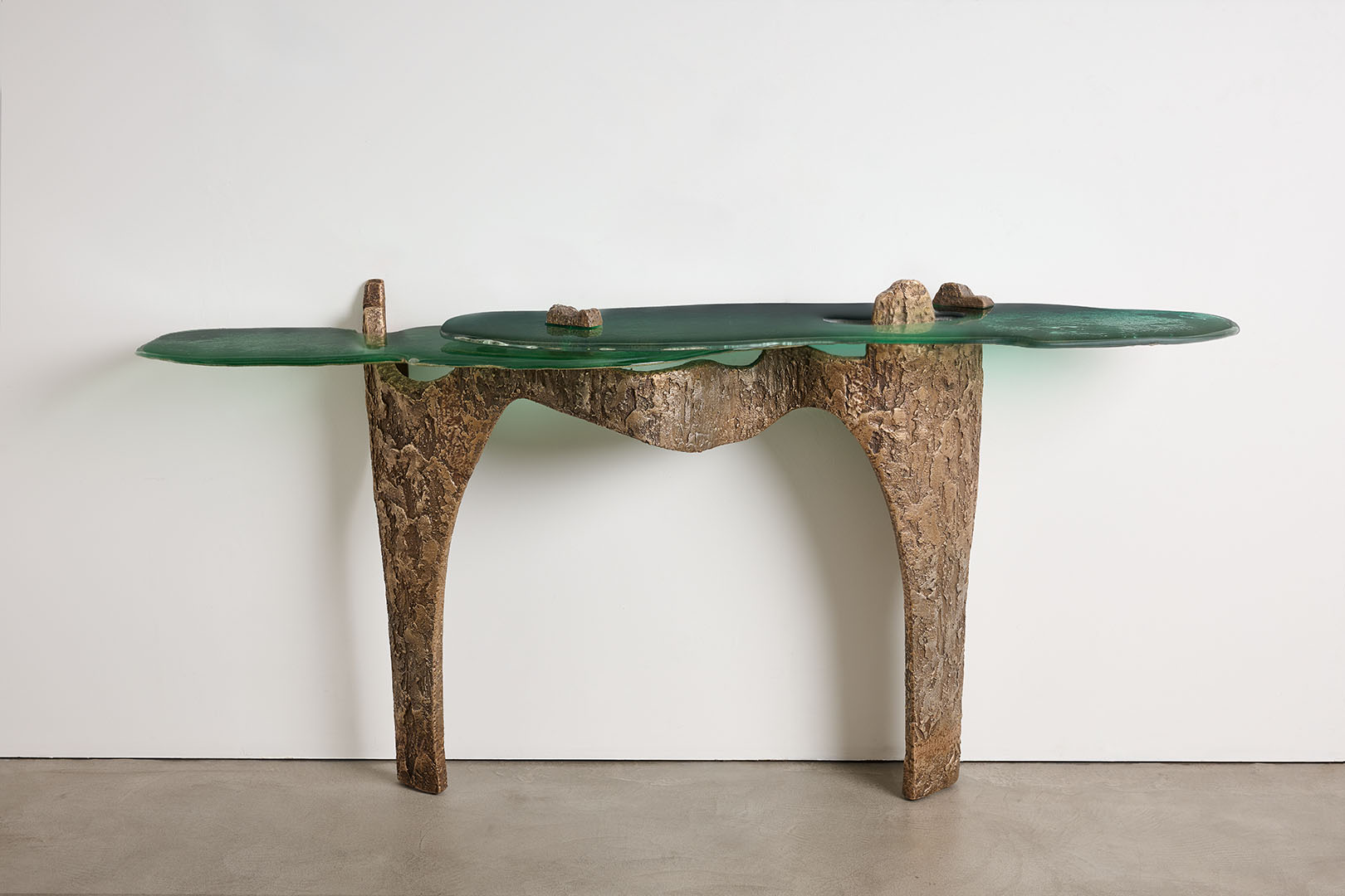 For the 2025 edition of Milan Design Week, the ‘Carbon’ collection will also return to Nilufar Depot. Previously showcased last year as part of a well-established collaboration centered around collectible design, the collection includes a coffee table with bronze legs and a console crafted from wood sourced from the Valtellina Alps. Each product is designed to meet the diverse needs of interior environments, enriching spaces with a beauty that echoes the wild