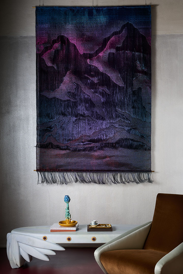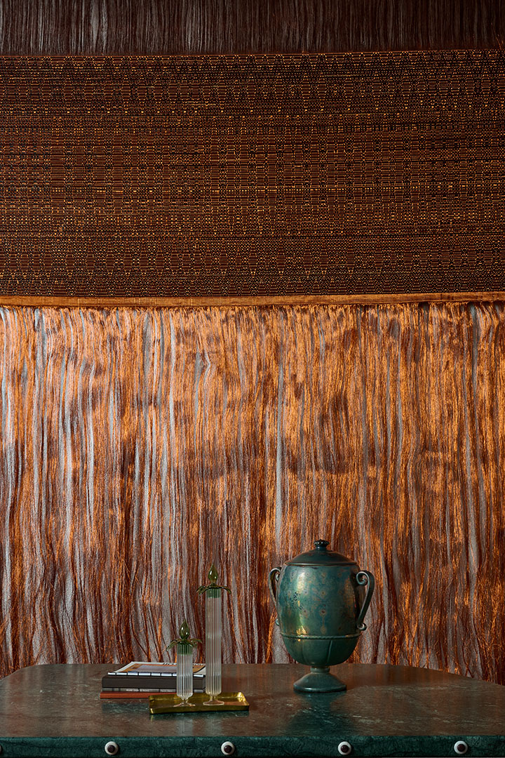 Nilufar has long championed the skill of Lizarazo to weave together collective memories rooted in textile traditions from Japan to the Andes with an innovative mix of materials where natural elements intertwine with unusual threads in copper, bronze and silver. The result is a wondrous tapestry of designs marked by subtlety and engaging aesthetics capable of uplifting any interior.