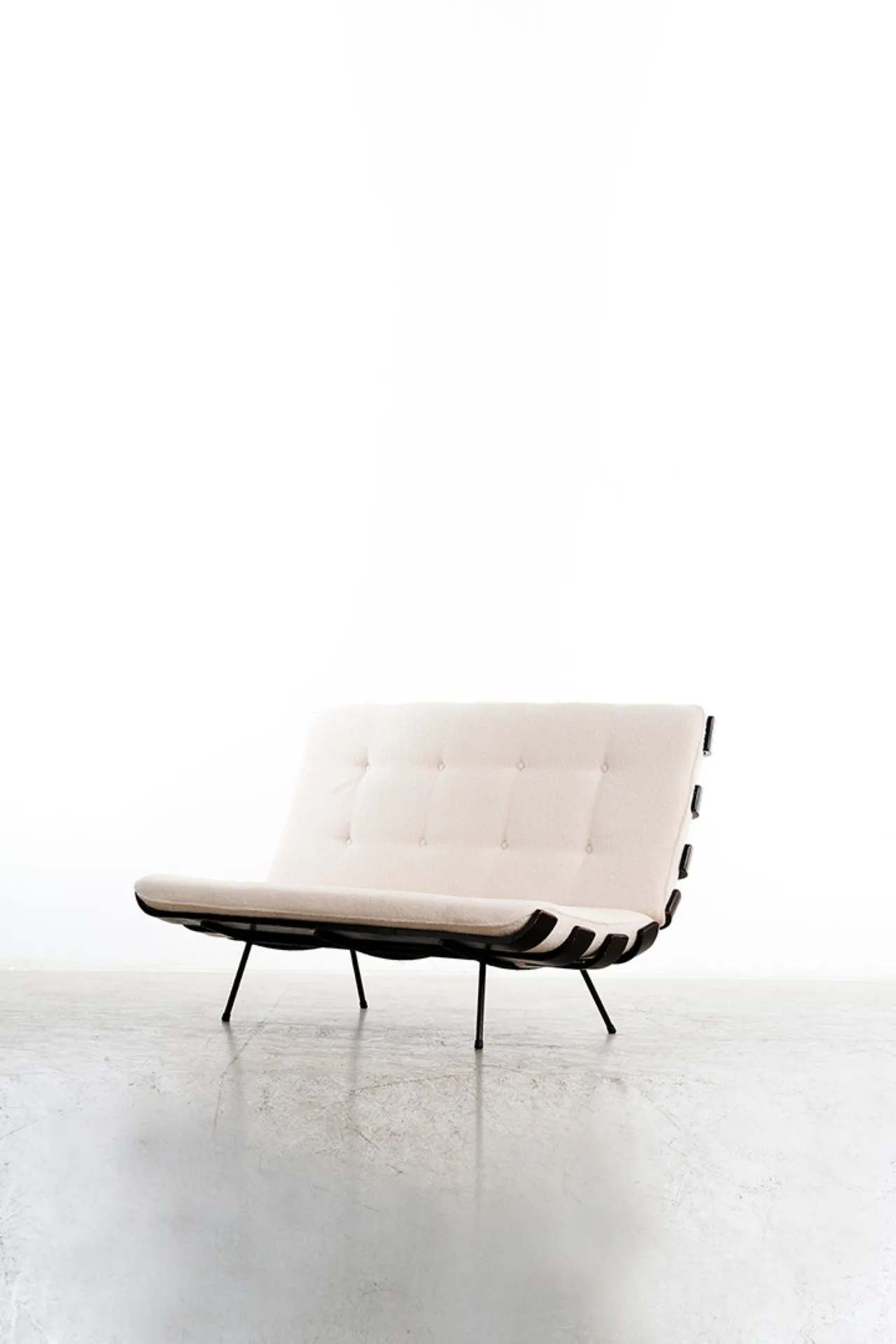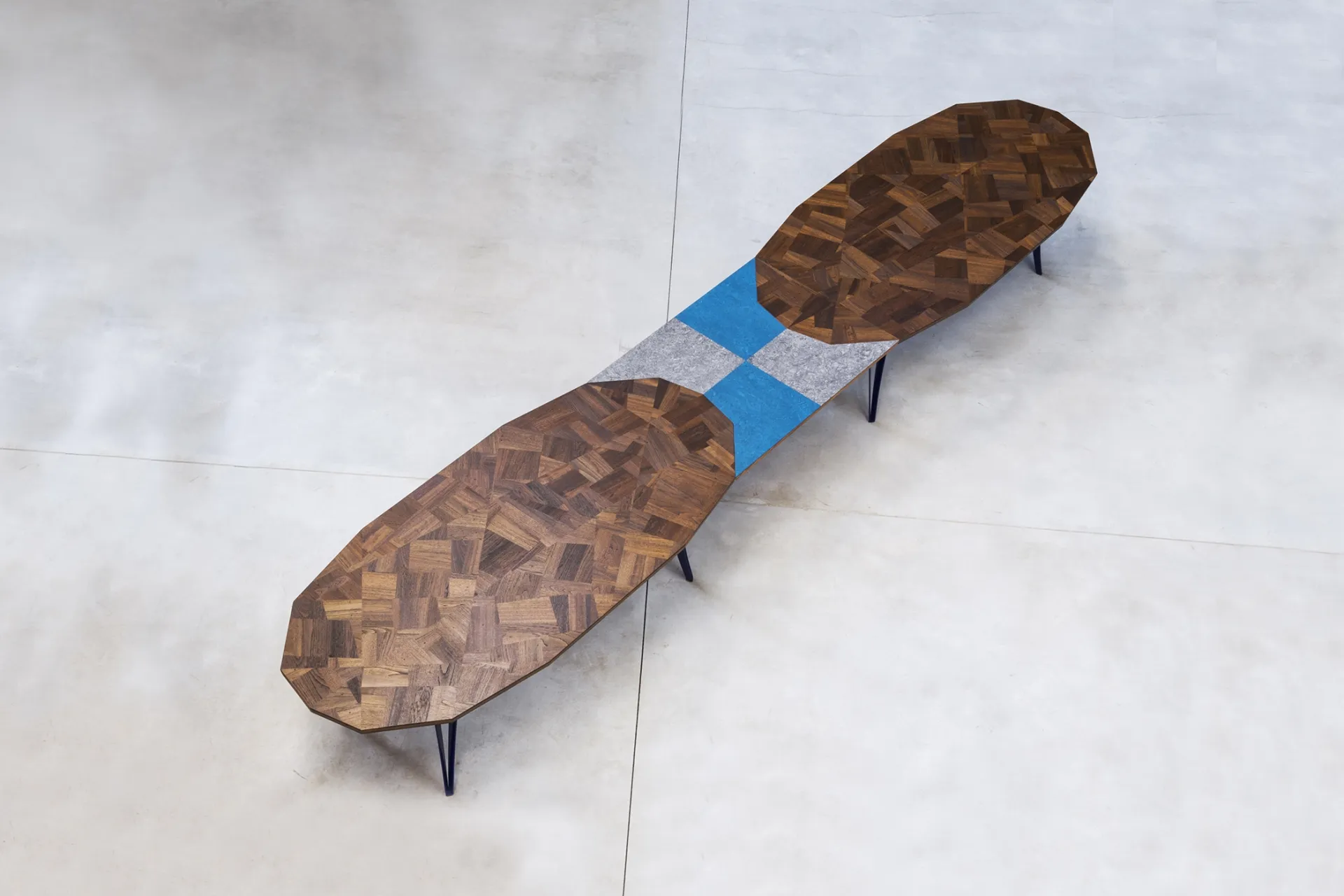 Precious furniture by the great masters of the 20th century like Gio Ponti, Joaquim Tenreiro and BBPR meets the sophisticated creations of designers who work closely with the gallery: Martino Gamper – showing the large configurable table Off-Cut Lino – and Jorge Lizarazo, who has designed the Guali carpet, woven by hand with mixed metals in the Colombian Hechizoo workshop. The display also features a series of refined fabric screens made by the historic English company Tibor Ltd.