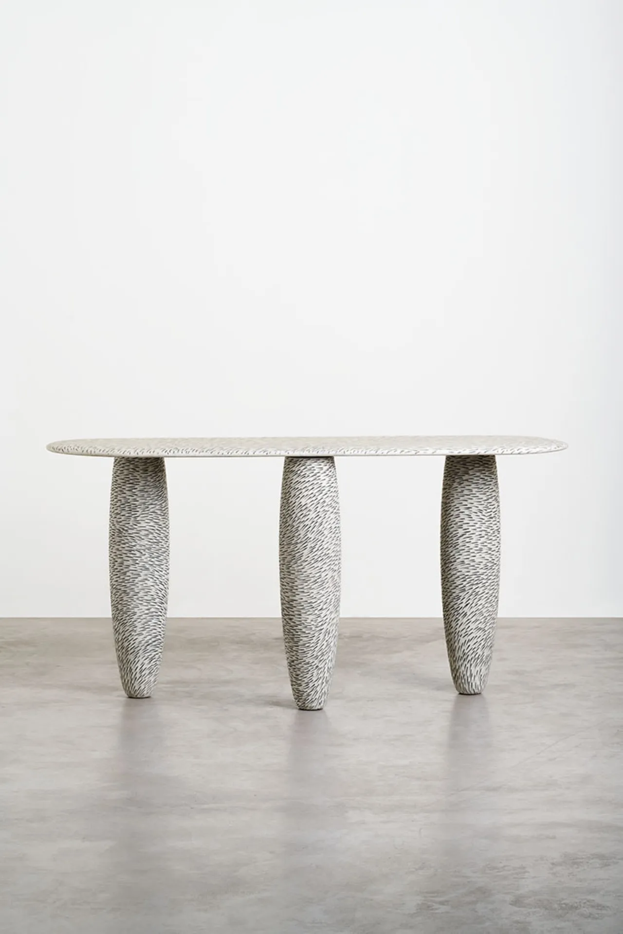 Each form is a canvas to showcase a series of neo-artisanal elements, entitled Sgraffito, Strata and Stria. This new collection of objects represents Analogia Project’s focus on craft-driven techniques: drawing with pen and paper, and modeling concepts in plasticine by hand, while diving into research-driven processes and studies that lead to novel material applications. Mancuso adopts a blend of cutting-edge technology and traditional craftsmanship, revealing the essence of what Leonardo da Vinci referred to as componimento inculto, the untamed composition that breathes life into the soul’s movements.