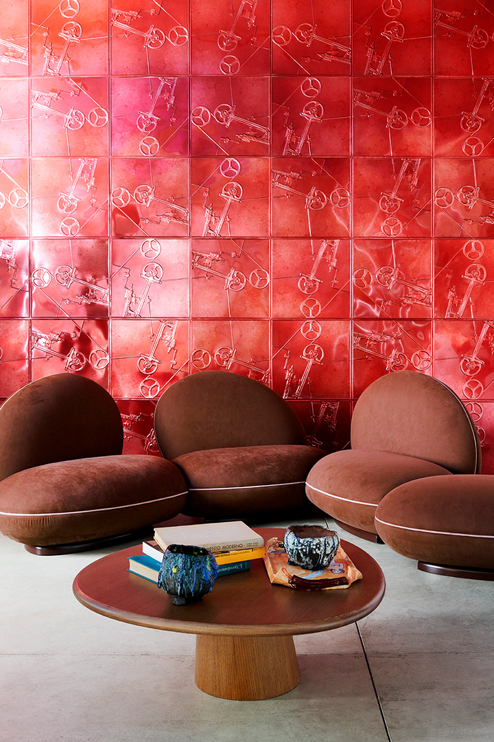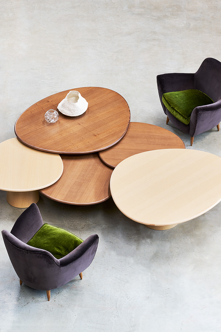 Gaon’s talents are further evident in the novel shapes he conjures up by teasing ideas from the natural world. With the Collide dining table, he engages the viewer with memorable designs made of wood. For Nilufar Edition, he surprises with playful forms to create his striking Porcini coffee tables and he takes a decidedly unconventional approach to seating with his delightful Macaron series.