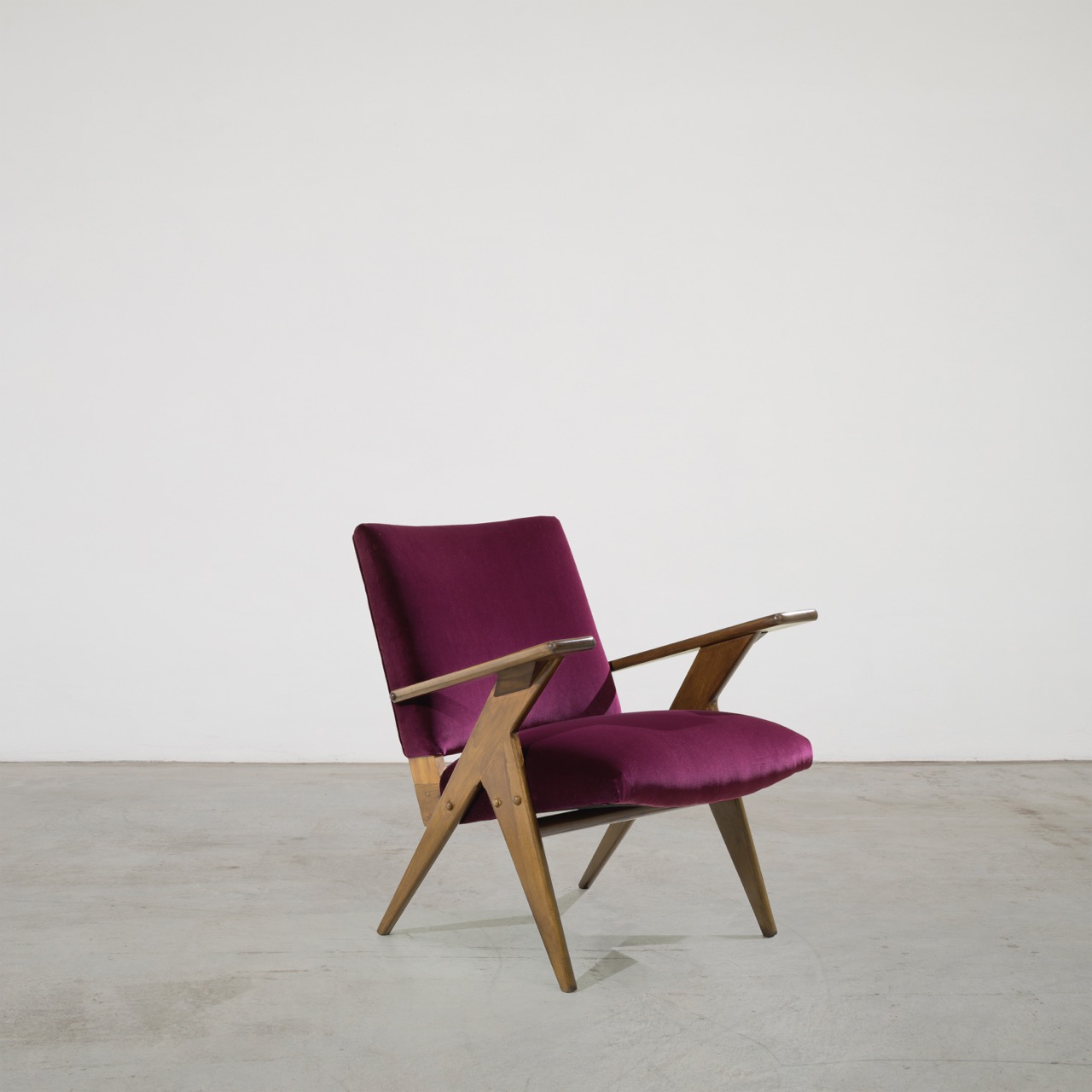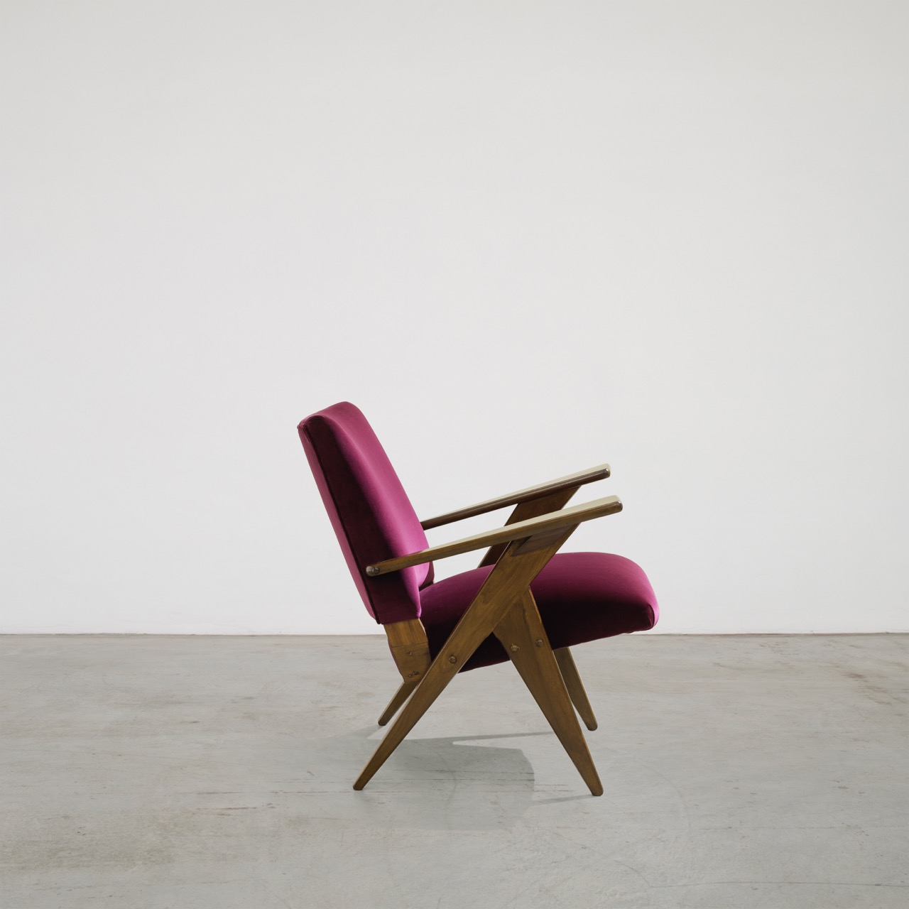 Manufactured in 1951 by José Zanine Caldas’ company, Mo?veis Arti?sticos Z, the 2-29 armchair exemplifies his innovative approach to design. Caldas approached wood with a profound understanding of its nature, limits, and possibilities. He balanced traditional craftsmanship and industrial production techniques. The result was accessible modern designs for everyone, that maintained exceptional quality in both construction and aesthetics.