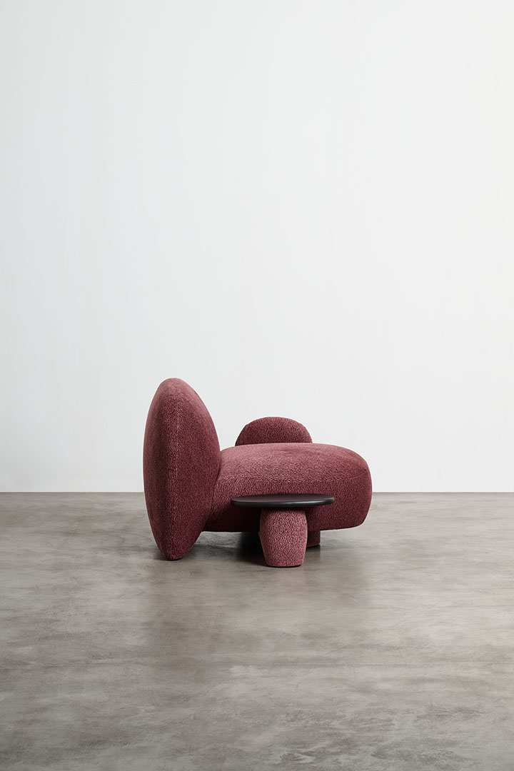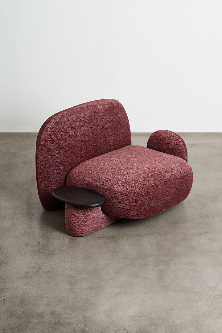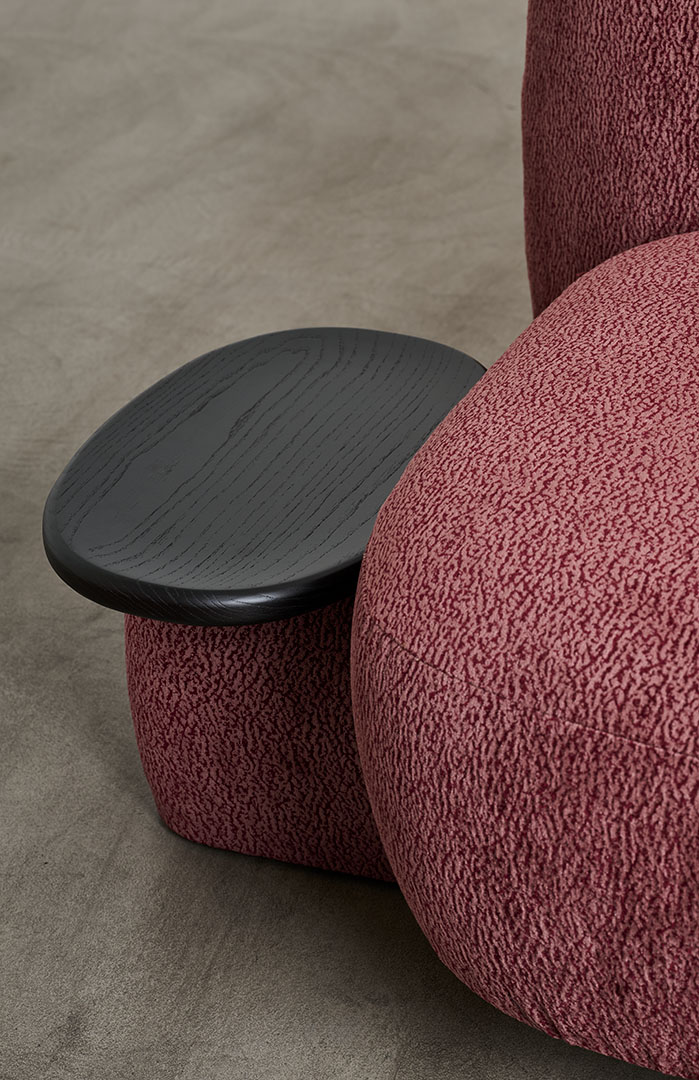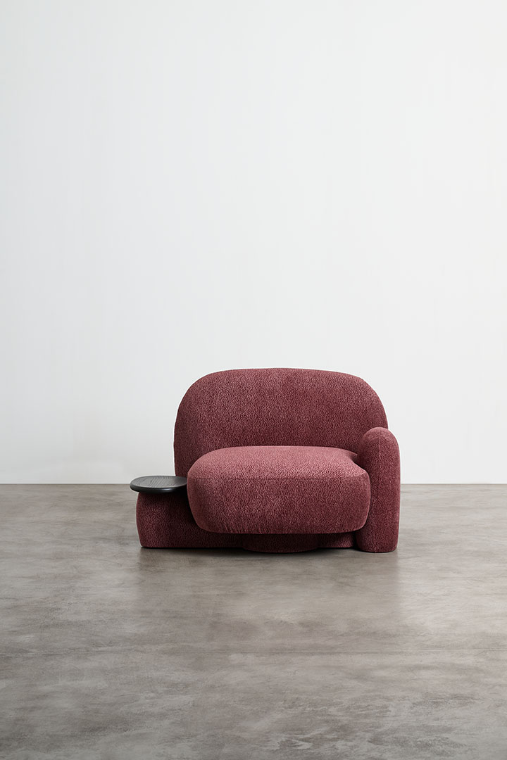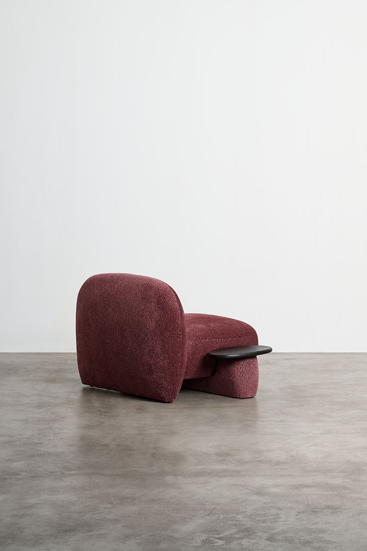 The Butler lounge chair unfolds as a clever fusion of distinct, rounded volumes. Blending functionality with sculptural beauty, an integrated side table emerges naturally as a perfect complement to the design. The harmonious interplay of smooth lines and contrasting materials creates an inviting ensemble crafted to elevate living spaces. Ideal for moments of relaxation or quiet reading, this piece effortlessly balances comfort and style, radiating a warm, welcoming presence.