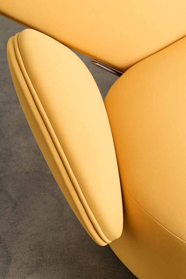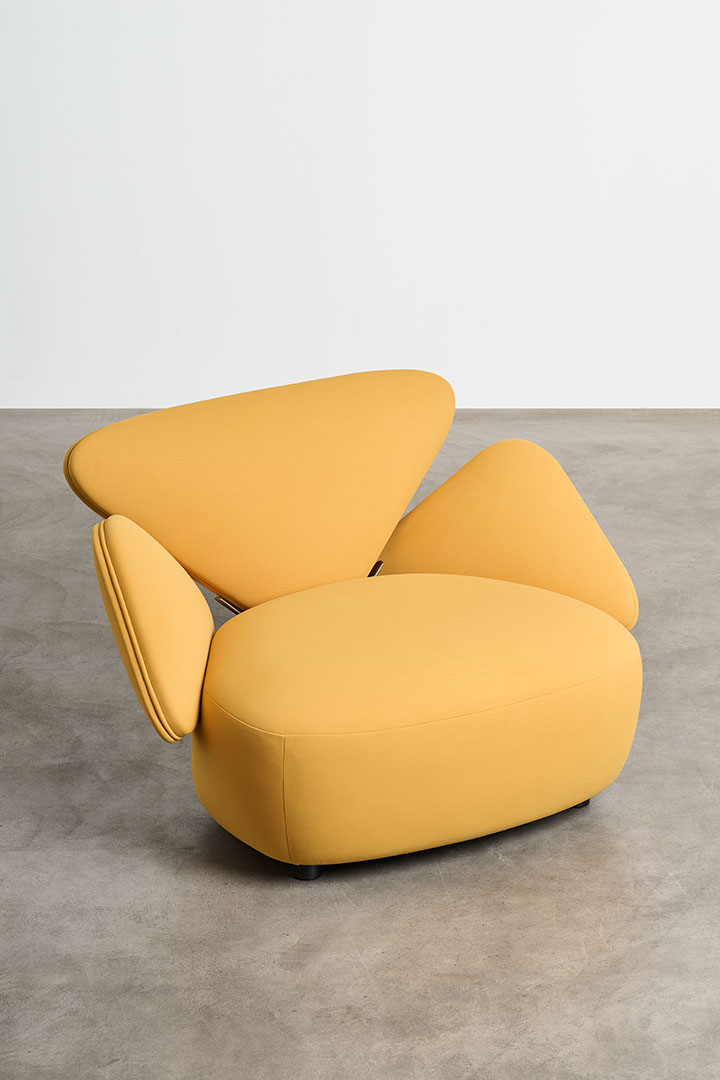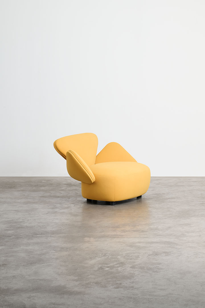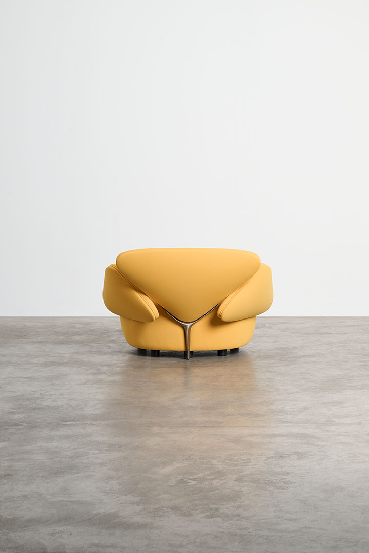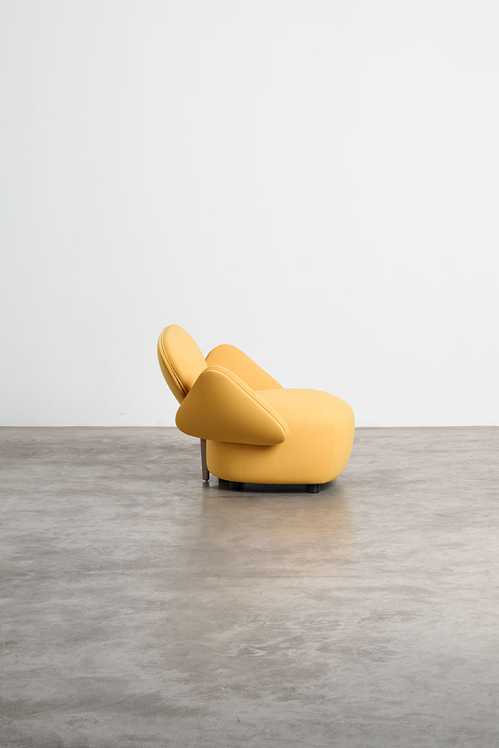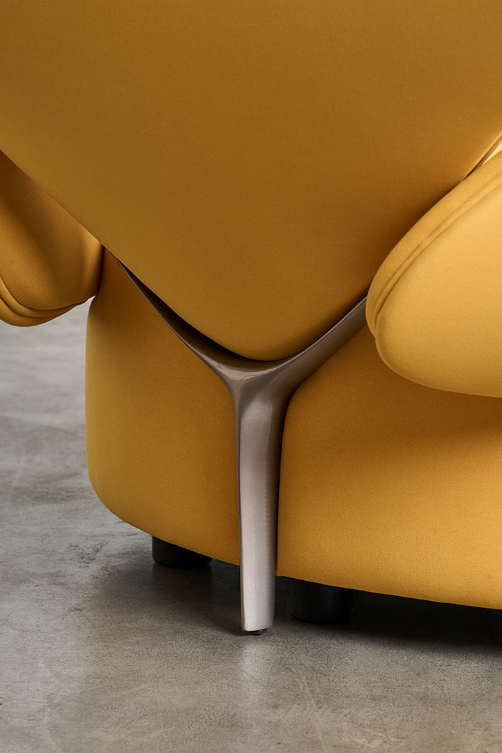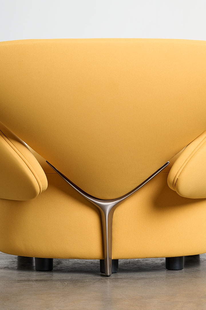 The typically rigid dimensions of the sofa are softened in Foretre, where the fluidity of nature replaces geometric constraint. Its organic silhouette draws inspiration from natural formations—curved stones, branching trees, the gentle asymmetry of vegetative growth. Crafted in wood and upholstered with polyurethane foam in varying densities, the piece offers both structure and softness, adapting naturally to the body. Cast aluminum branches subtly link the individual cushions, serving not only as connectors but as sculptural gestures that reinforce the sofa’s biomorphic identity. More than a piece of furniture, Foretre is an invitation to reconnect with the irregular, intuitive rhythm of the natural world.