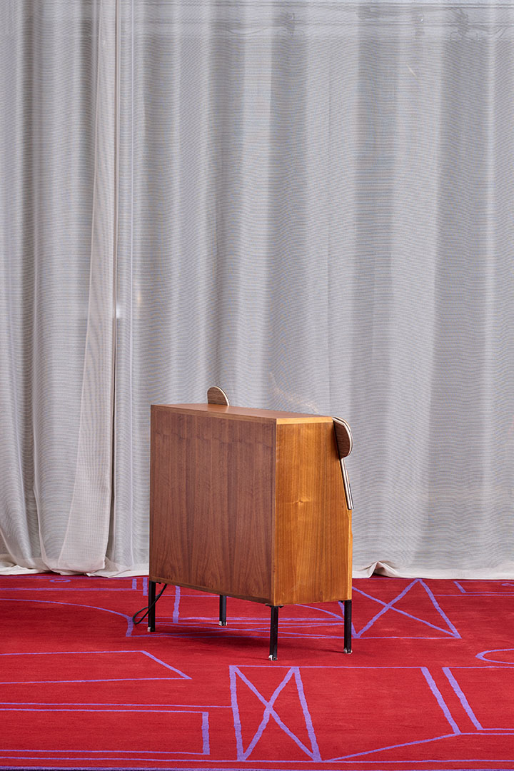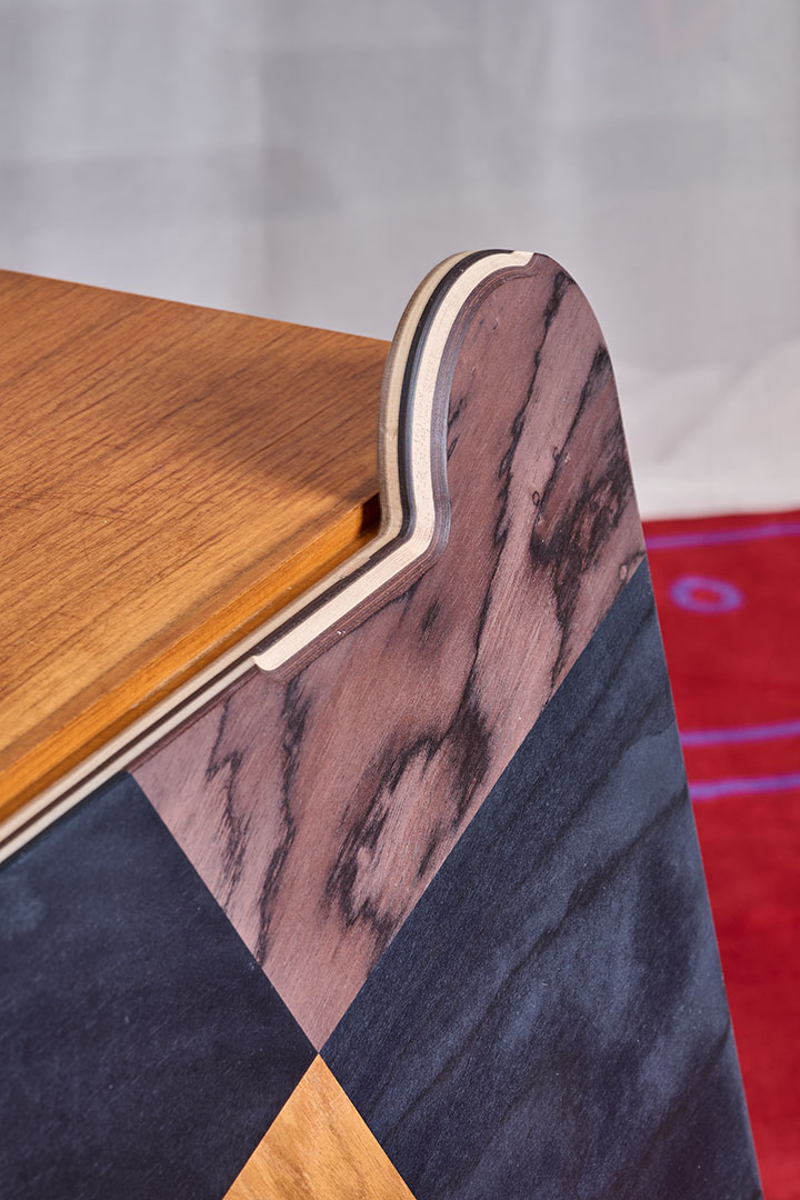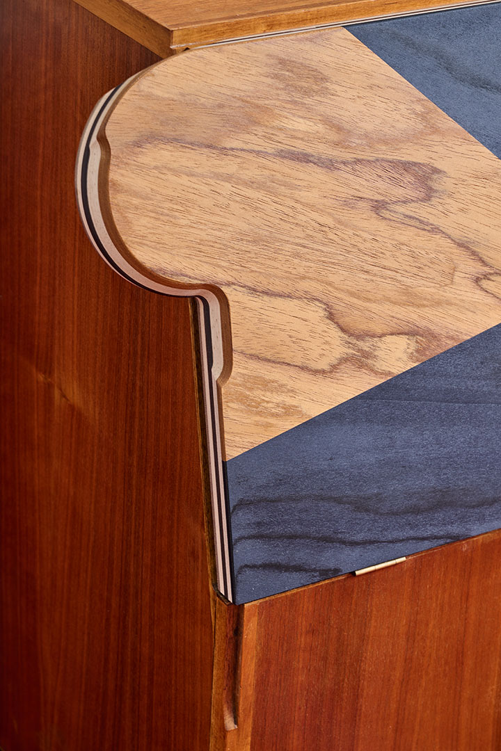 Redesigned by Martino Gamper during the live performance celebrating the tenth anniversary of Nilufar Depot, PostForma Ico originates from a vintage nightstand from the Positano series, designed by Ico Parisi and manufactured by MIM in Italy circa 1958. Without altering its form or function, Gamper introduces new, handcrafted details that spark a dialogue between past and present, enhancing the original proportions and identity through a contemporary lens.