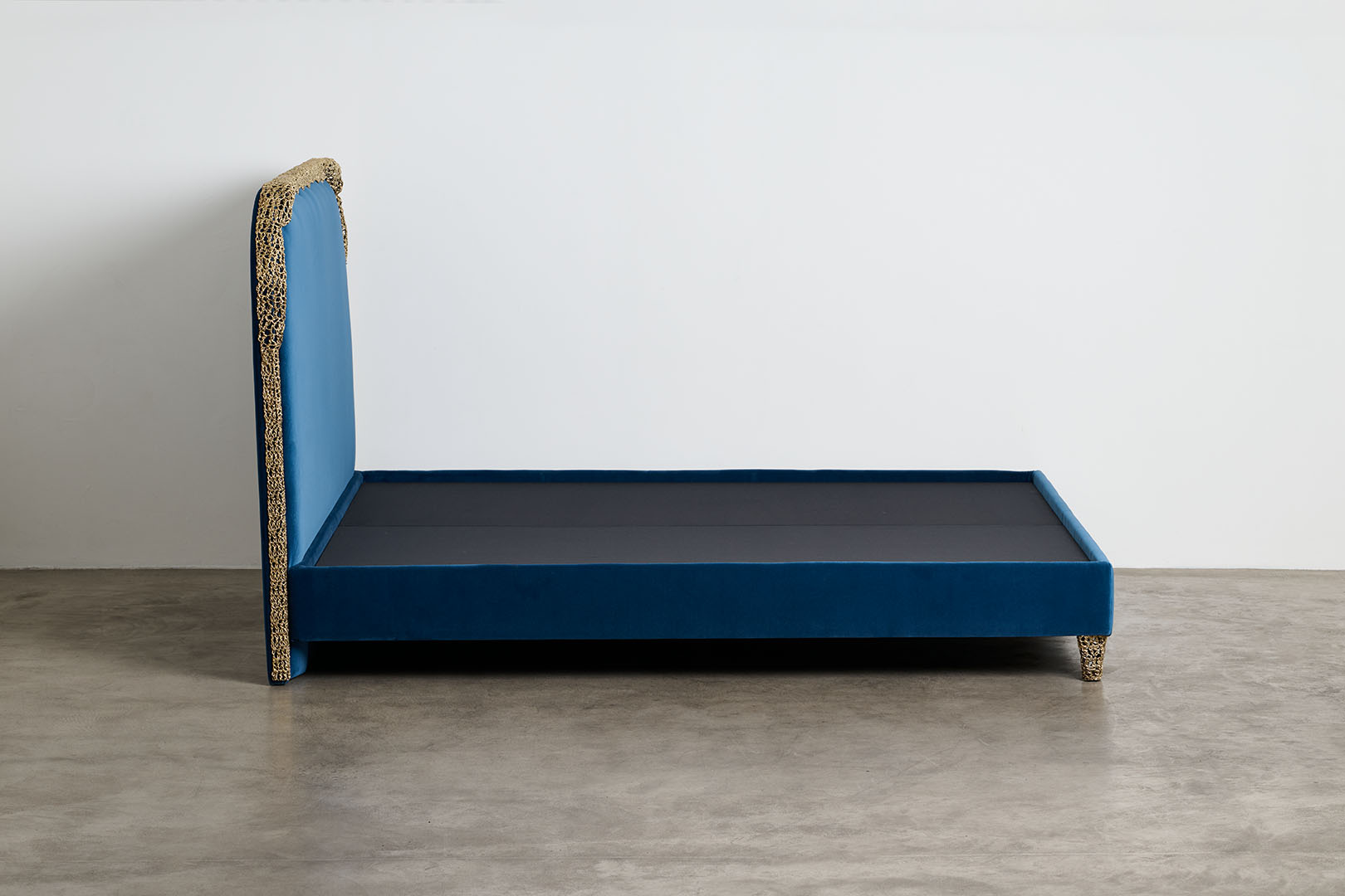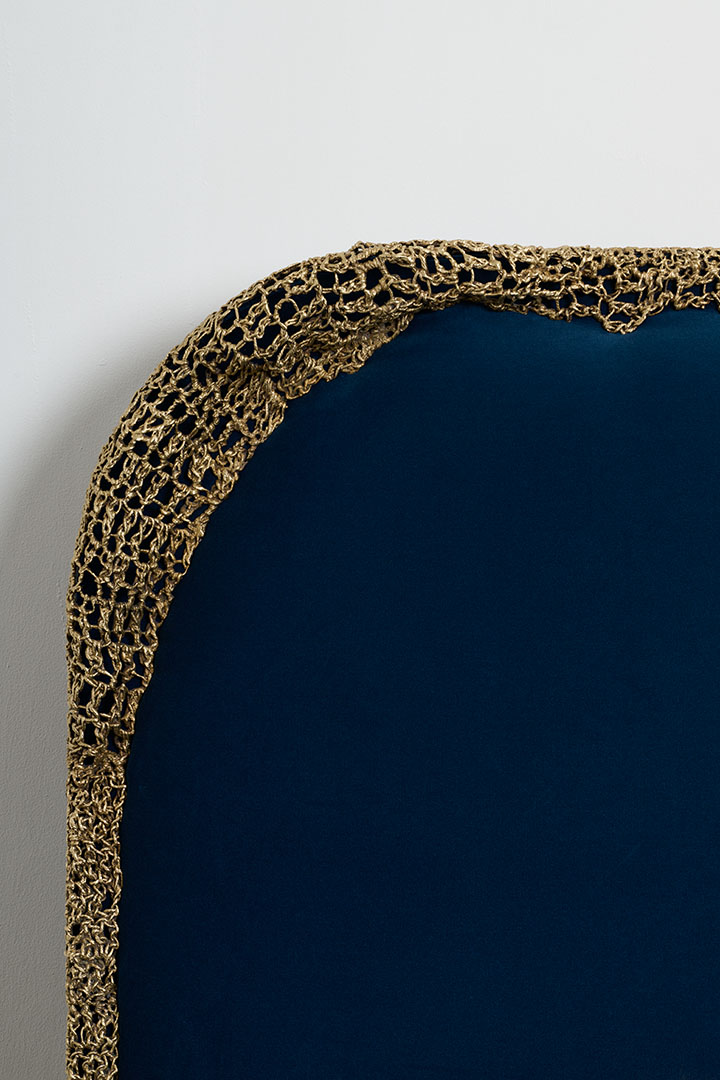 Designed by Allegra Hicks, Trame di Confine collection unfolds through sculptural forms and a refined dialogue of materials. Solid bronze meets the softness of crochet, while velvet upholstery introduces depth and a rich tactile contrast. Rooted in artisanal craftsmanship, the collection centers on the concept of perimeter. Bronze frames trace boundaries that protect without enclosing, becoming thresholds between visible and invisible. Soft volumes and tactile finishes create a sensory experience, elevating contemporary design into something intimate and embracing.