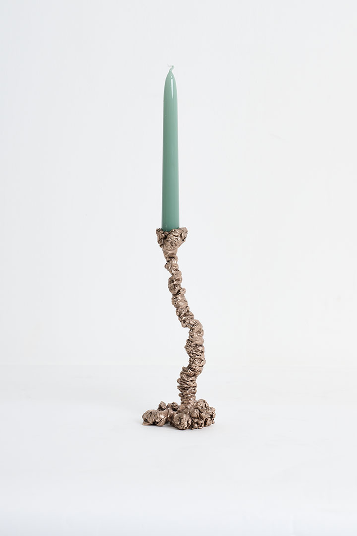 Designed by Tipstudio, Ceracqua is a collection of handcrafted, sculptural candleholders born from an ephemeral gesture—liquid wax released into water, capturing the instant in which fluidity crystallizes into form. Each piece emerges from this delicate encounter, suspended between spontaneity and intention, recalling the mythic birth of red coral from Medusa’s blood. As matter solidifies into organic, flowing silhouettes, these one-of-a-kind candleholders evoke mineral fragments, abyssal formations, and distant landscapes. Created in foundry wax and cast in bronze through the lost-wax process, every object is hand-finished, becoming a unique bronze design piece where poetic gesture meets contemporary design.