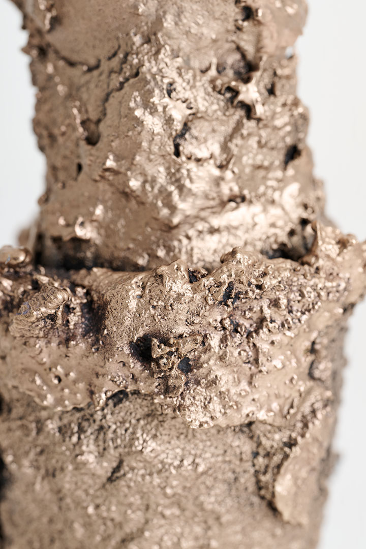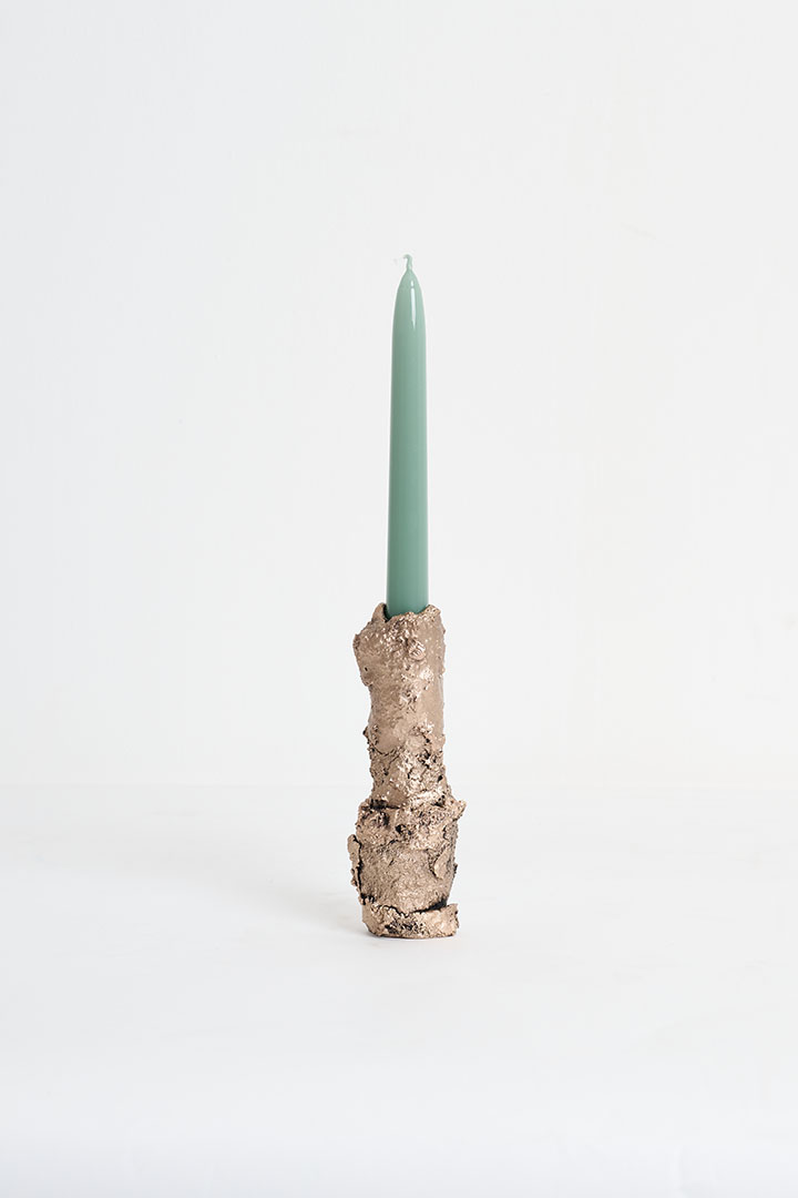 Designed by Tipstudio, Forma Fluida is a collection of handcrafted, sculptural candleholders born from an experimental exploration of bronze and its fluidity. Each piece emerges from the spontaneous behavior of the metal, layering and aggregating into unique, tree-like forms. The overlapping bronze layers shape the surface, creating expressive textures that capture both purity and imperfection. Evoking the ever-expanding world of nature, these one-of-a-kind candleholders celebrate material experimentation and the transformative power of bronze. Each object is entirely unique, a sculptural design piece where spontaneity meets contemporary craftsmanship.