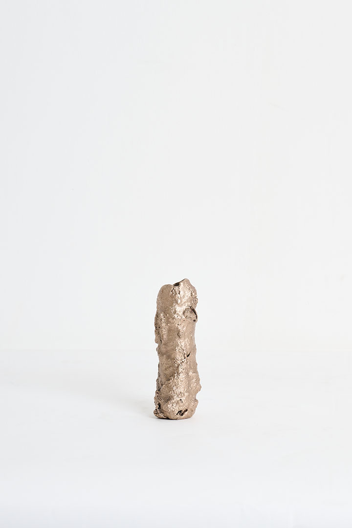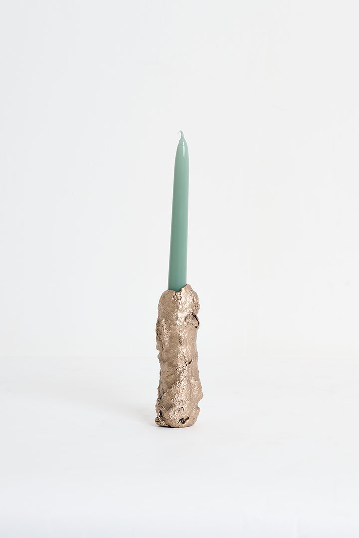Designed by Tipstudio, Forma Fluida is a collection of handcrafted, sculptural candleholders born from an experimental exploration of bronze and its fluidity. Each piece emerges from the spontaneous behavior of the metal, layering and aggregating into unique, tree-like forms. The overlapping bronze layers shape the surface, creating expressive textures that capture both purity and imperfection. Evoking the ever-expanding world of nature, these one-of-a-kind candleholders celebrate material experimentation and the transformative power of bronze. Each object is entirely unique, a sculptural design piece where spontaneity meets contemporary craftsmanship.
