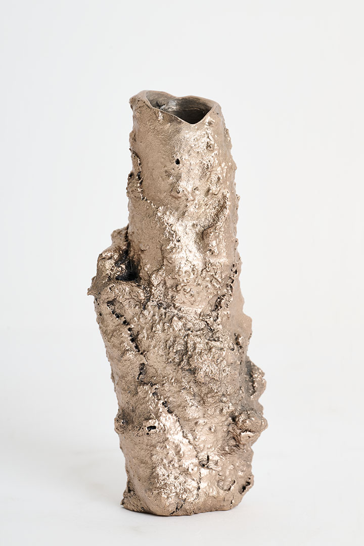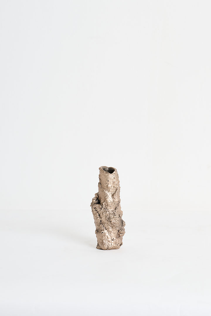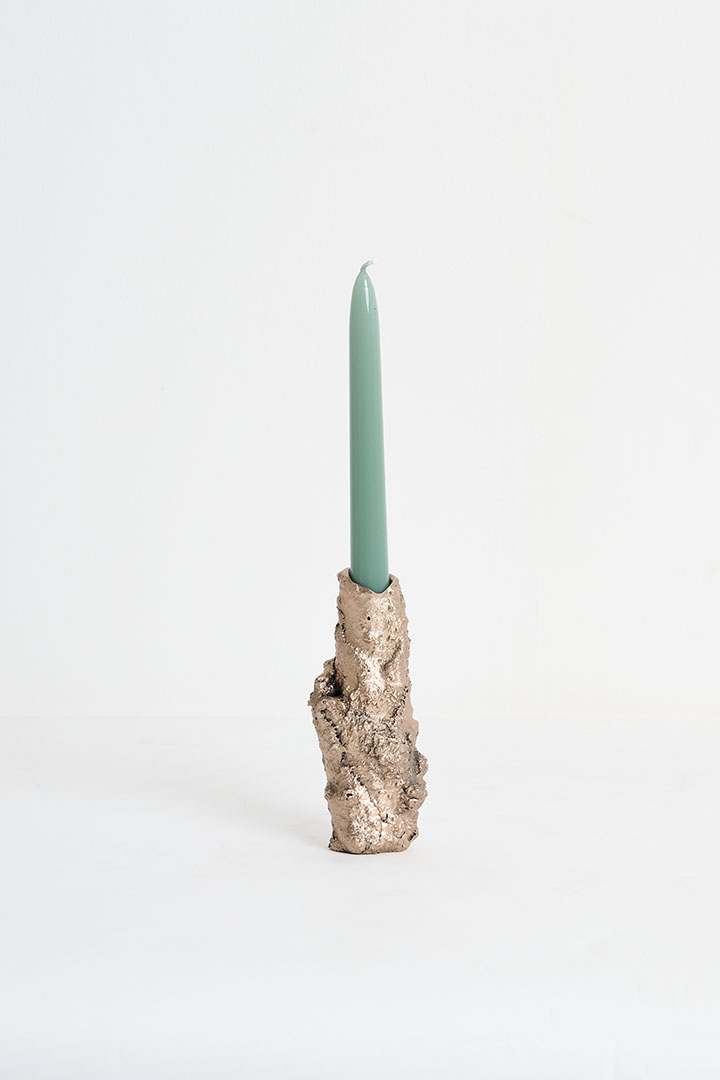 Designed by Tipstudio, Forma Fluida is a collection of handcrafted, sculptural candleholders born from an experimental exploration of bronze and its fluidity. Each piece emerges from the spontaneous behavior of the metal, layering and aggregating into unique, tree-like forms. The overlapping bronze layers shape the surface, creating expressive textures that capture both purity and imperfection. Evoking the ever-expanding world of nature, these one-of-a-kind candleholders celebrate material experimentation and the transformative power of bronze. Each object is entirely unique, a sculptural design piece where spontaneity meets contemporary craftsmanship.