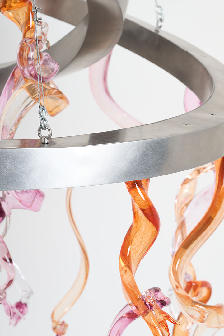 Blown glass, LED, lacquered steel frame