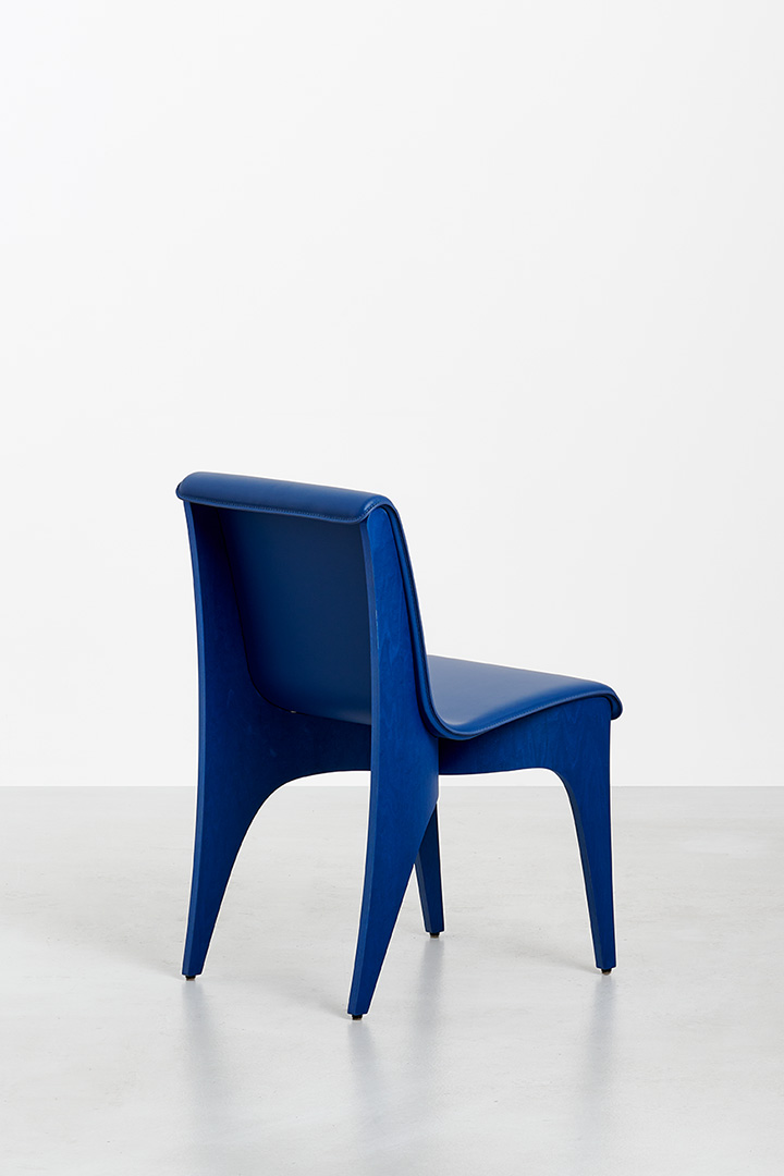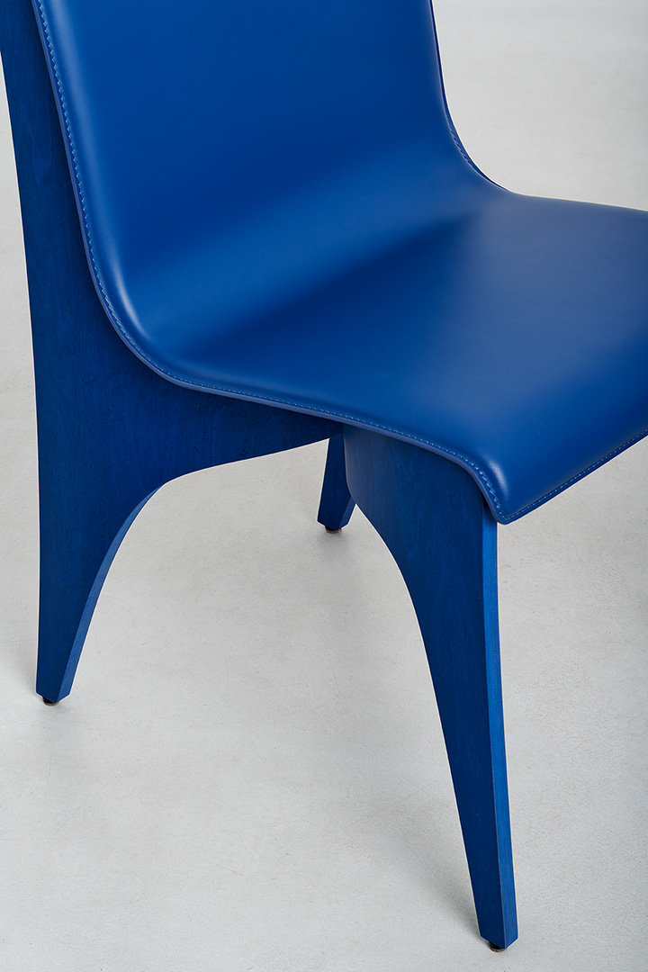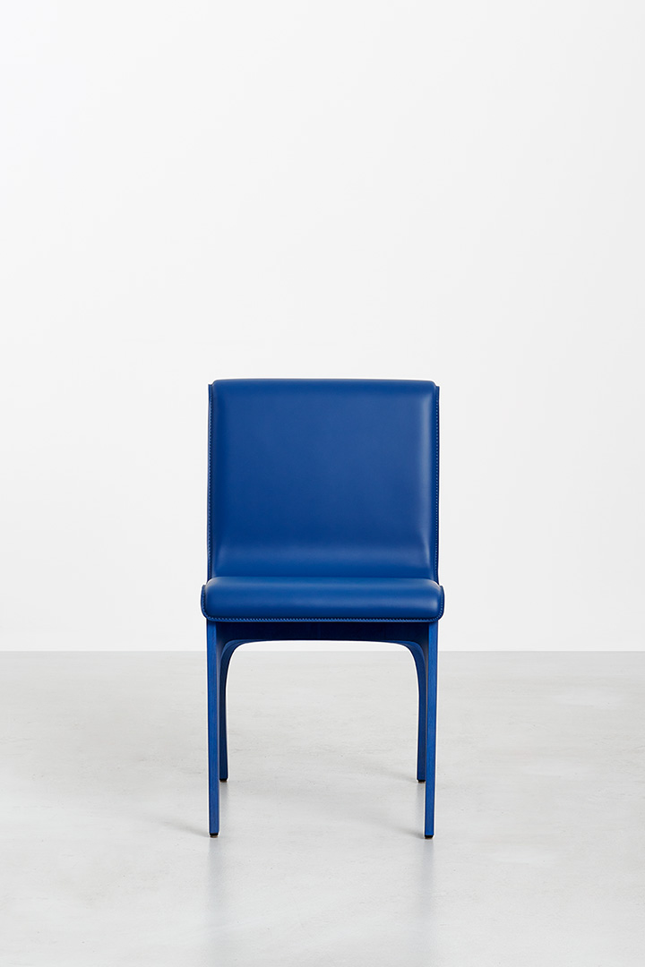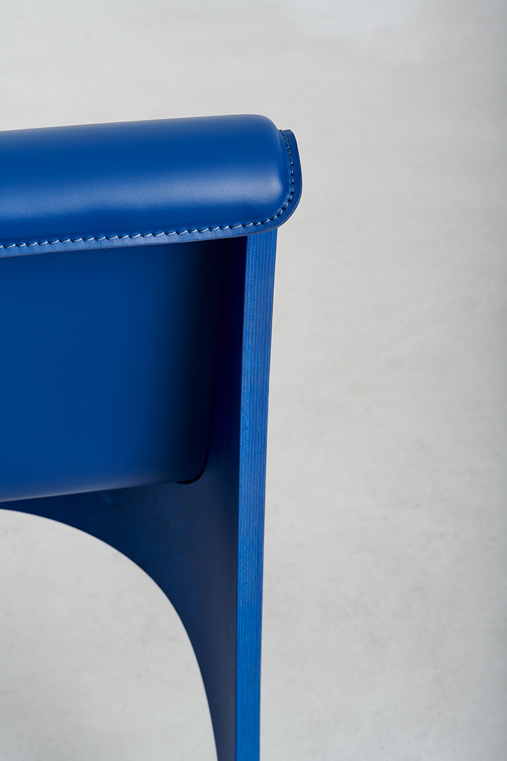 Deeply rooted in Italy’s tradition of fine furniture making, the Unfold series celebrates the bentwood technique, which enables the creation of pieces that are remarkably light yet exceptionally strong by folding thin sheets of wood into elegant, enduring forms. For the chairs, two semi-cylindrical elements are joined at a single point, supporting a leather seat that gently drapes across them. The apparent separation between the curved base elements lends a sense of movement and lightness, while the extended leather surface confers ergonomic support and a sense of refinement.