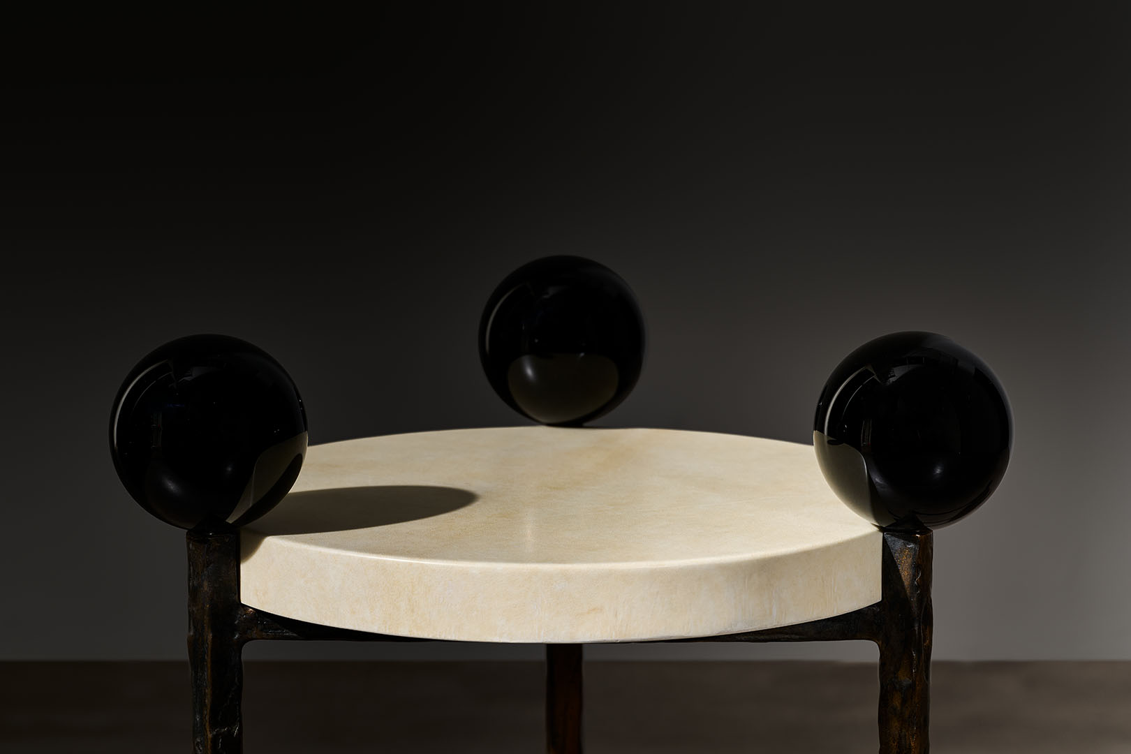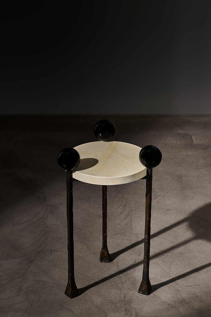 The Jóia collection extends the StudioDanielK's signature jewelry-inspired approach to design with tables, chair, and desks adorned with brass accents and semi-precious stones— elements that continue the conversation of material exploration and refined elegance established by ‘Antechamber’, StudioDanielK inaugural collection.