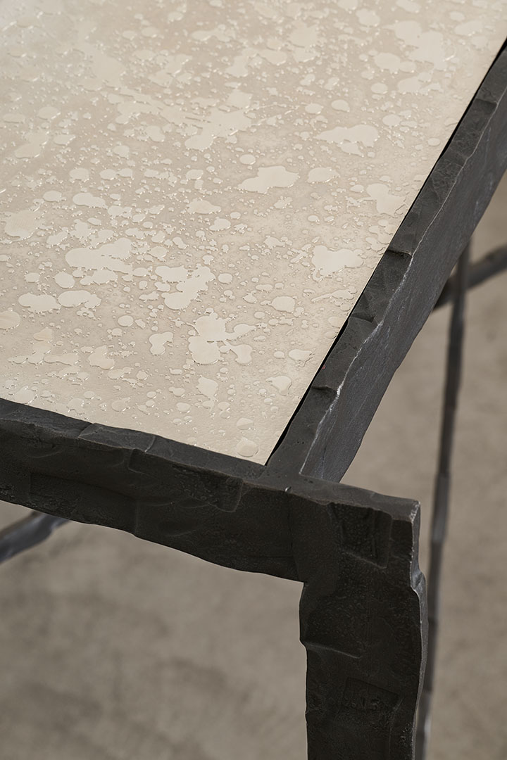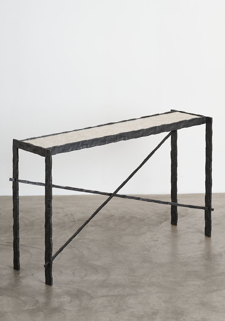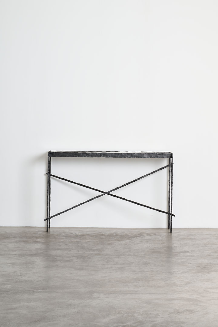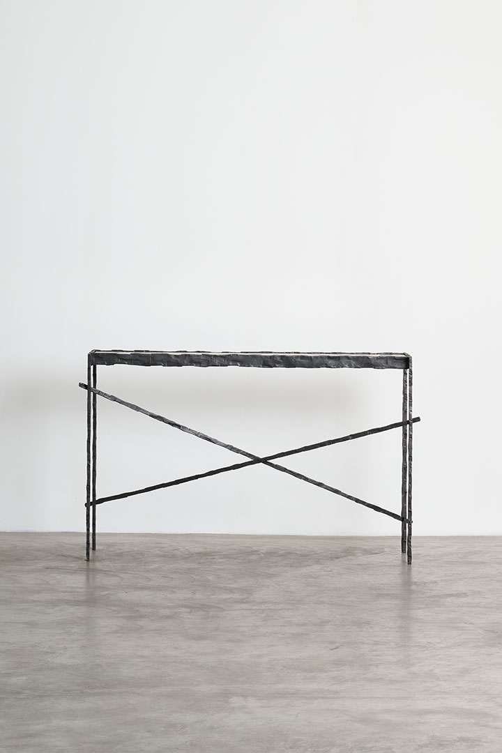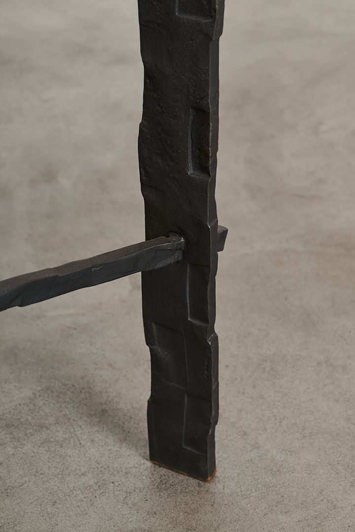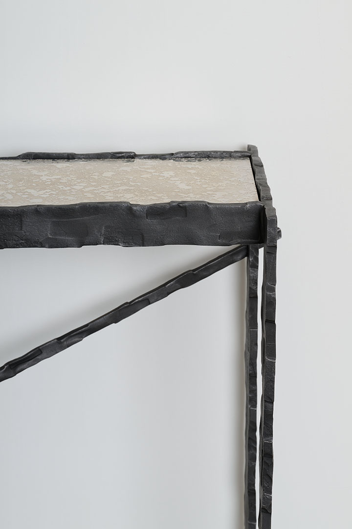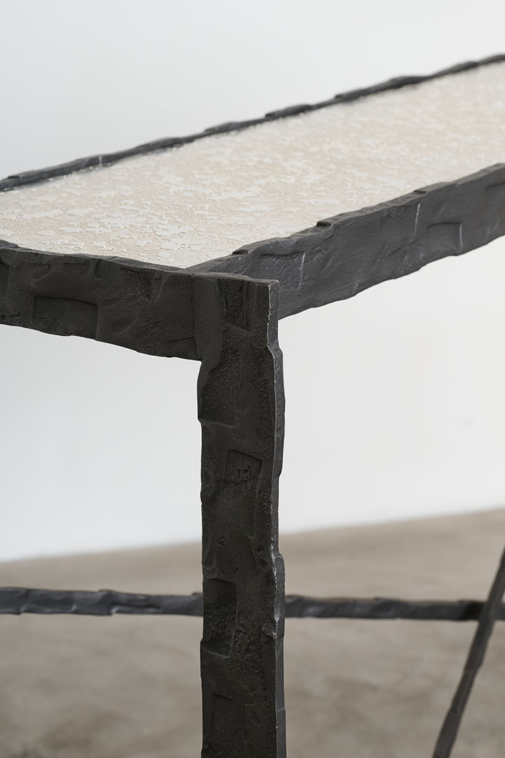 Influenced by his expertise in gilding restoration and global travels, this console by Hicham Ghandour embodies his distinctive signature style of blending unexpected materials. Crafted from iron and rock crystal, the piece offers both elegance and timeless craftsmanship.