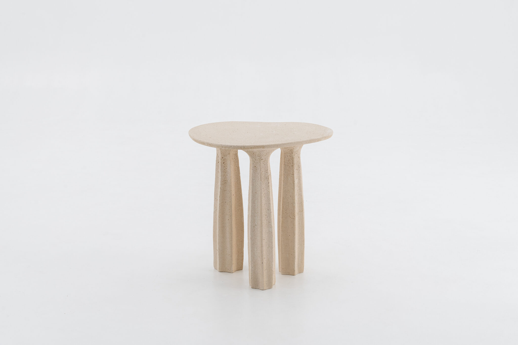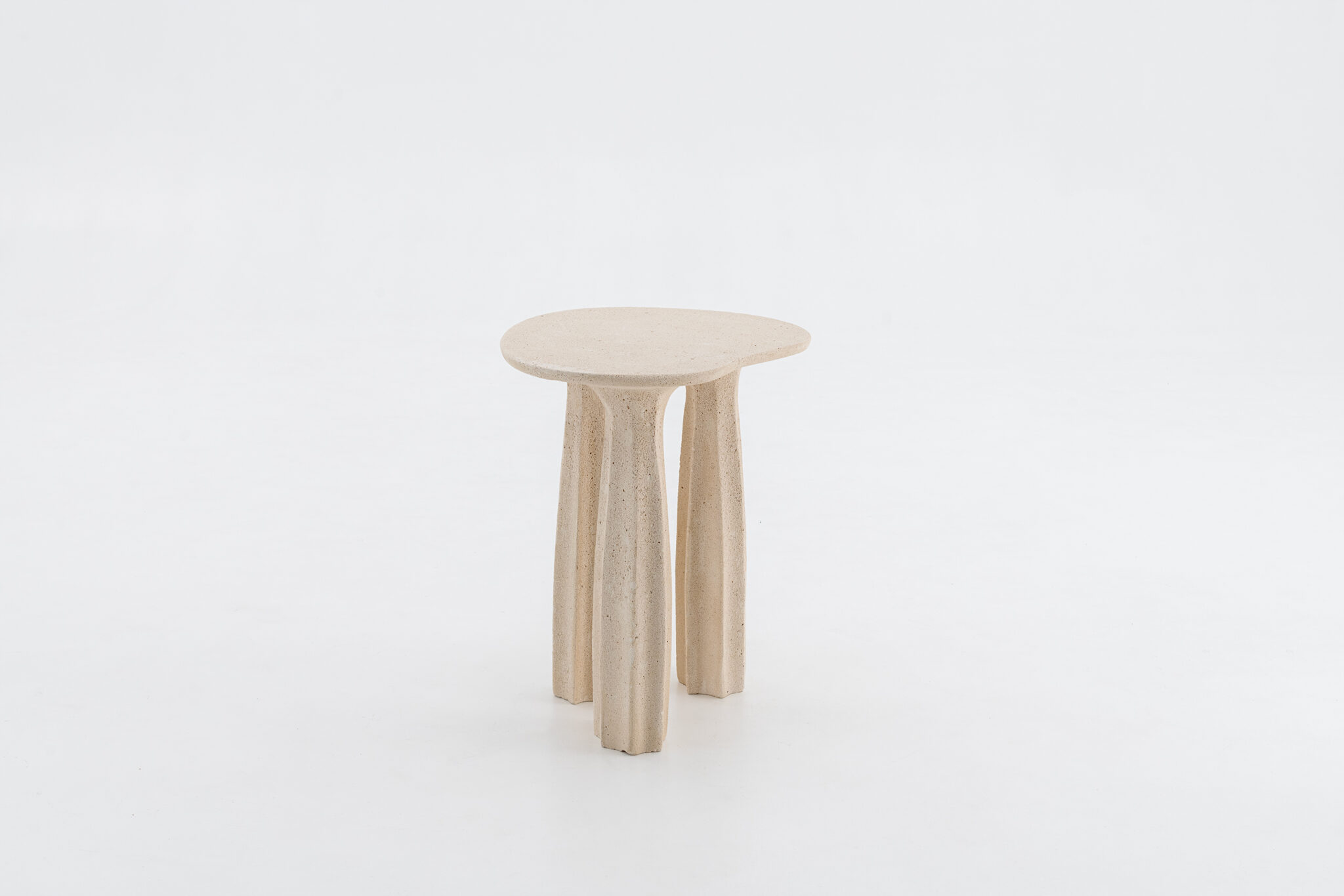 Designed by George Mohasseb and developed in collaboration with Matterlab, the Cactus Collection stands as a significant exploration of resilience and transformation. Inspired by the ability of cactus to grow and thrive in adverse environments, the collection reflects on how nature adapts to challenging conditions while maintaining strength and beauty. Rather than reproducing the plant literally, the collection translates its essence into sculptural furniture pieces that evoke endurance, protection, and organic growth. The forms suggest the quiet power of survival and the elegance that emerges through adaptation. Materials are carefully selected to reinforce the connection to nature and geological processes. Marble and limestone particles form the core of the pieces, emphasizing mineral strength and timelessness. Crushed and recycled marble is combined with resin and poured into 3D-printed molds, where it is cast into textured, organic shapes that echo the irregular yet harmonious forms found in natural landscapes. This process allows each piece to maintain a unique surface and structure, reinforcing the idea of growth shaped by environmental forces.