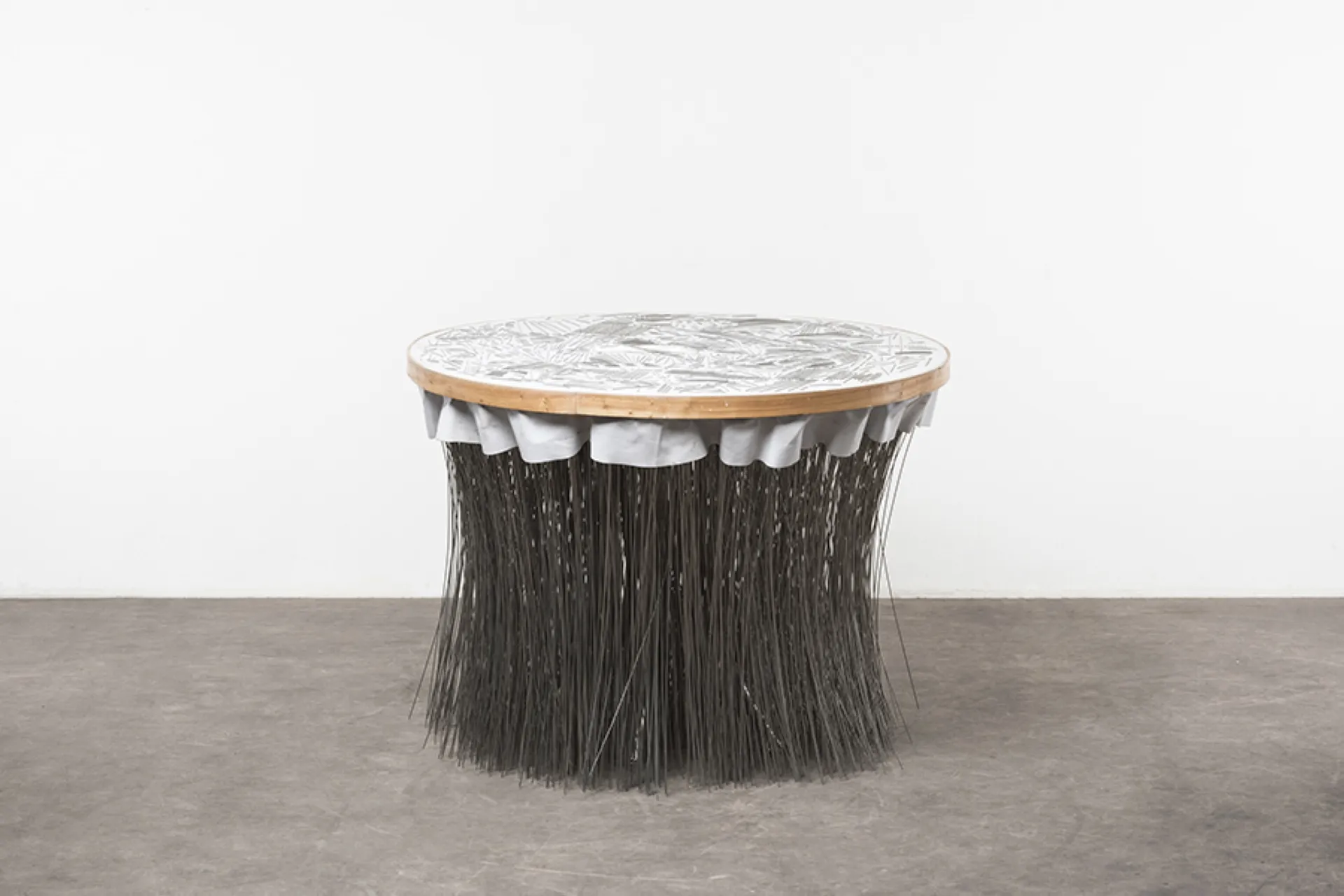 Aluminium powder, jesmonite, PU resin, dichroic glass
