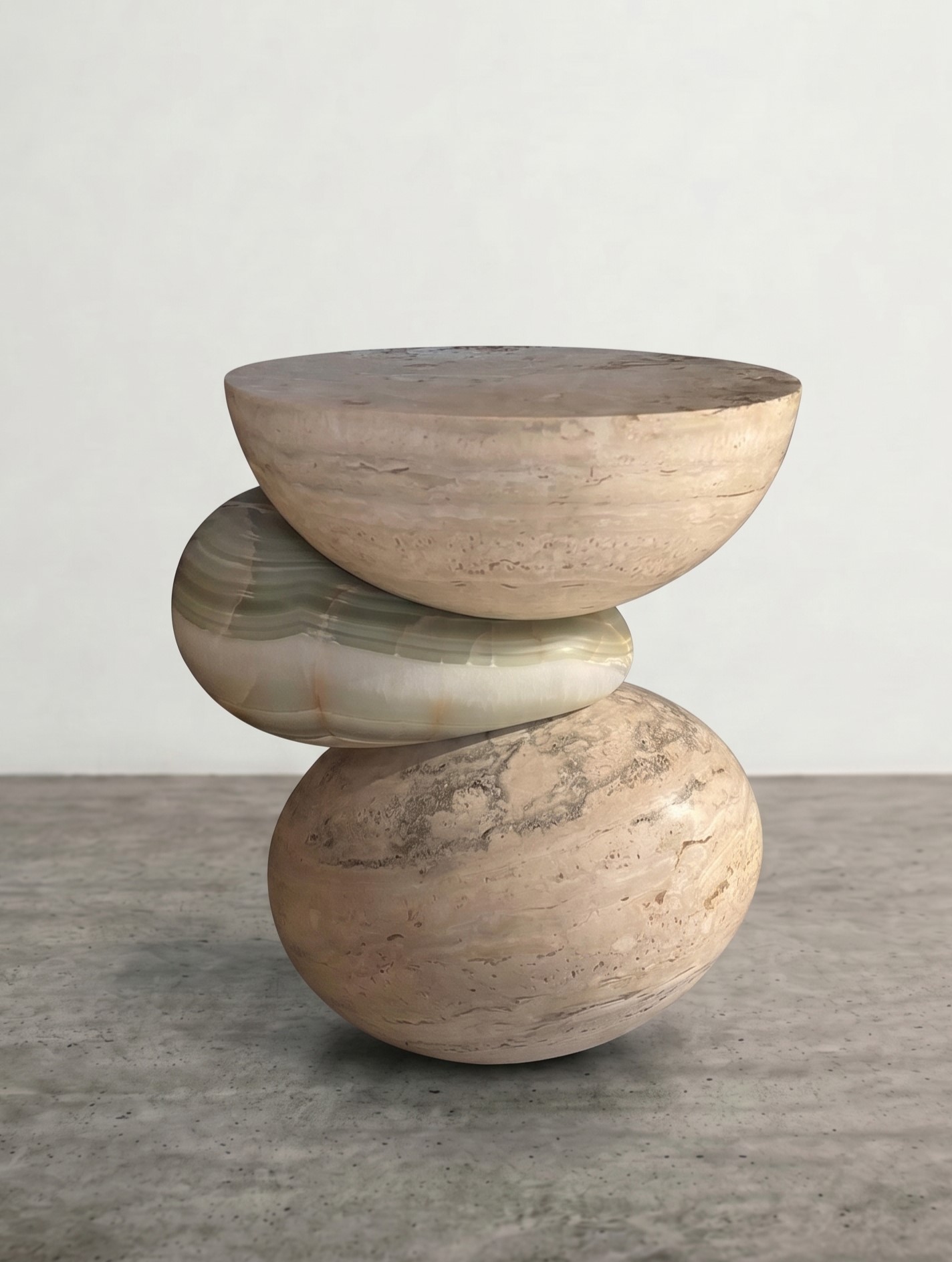 Designed by Gal Gaon, the Raw Pebbles tables are inspired by the smooth, organic shapes of river stones. Crafted Gaon’s signature free-form style, each piece features soft, rounded contours and a visible natural grain that celebrates the wood’s raw beauty. Arranged in groups like a cluster of pebbles, they create movement and depth, transforming the space into a harmonious balance between nature’s simplicity and refined handcraft.