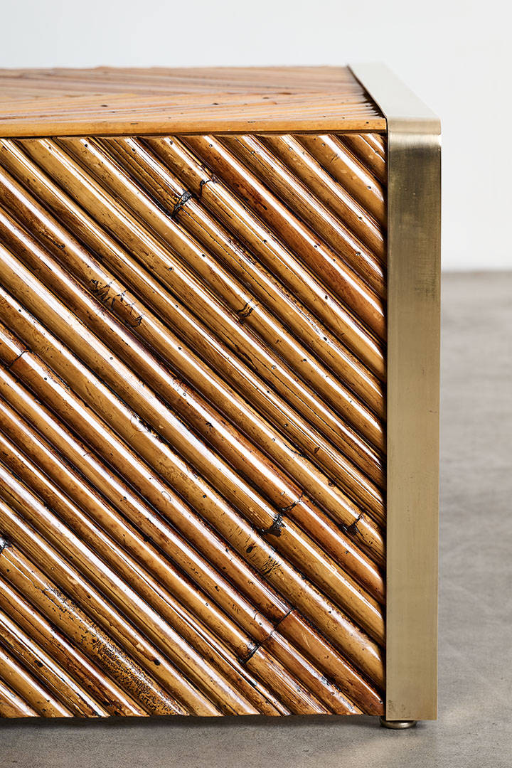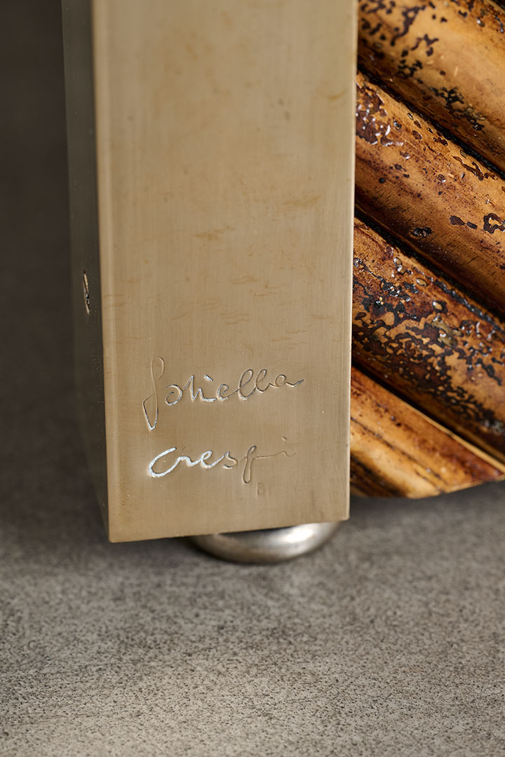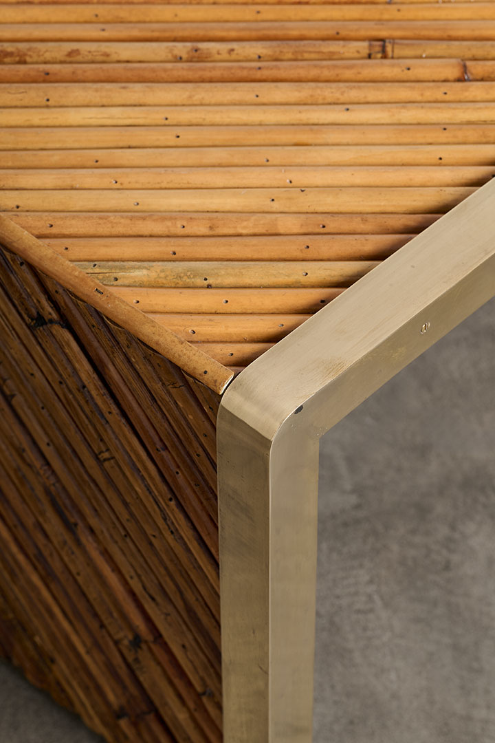 In her celebrated Rising Sun series, Gabriella Crespi interprets nature symbolically, using radiant forms, brass accents, and the warm tones of bamboo as references to the sun. Masterfully shaping materials into organic silhouettes, she designed this rare vintage low table whose refined functionality and sculptural presence express a singular design sensibility.