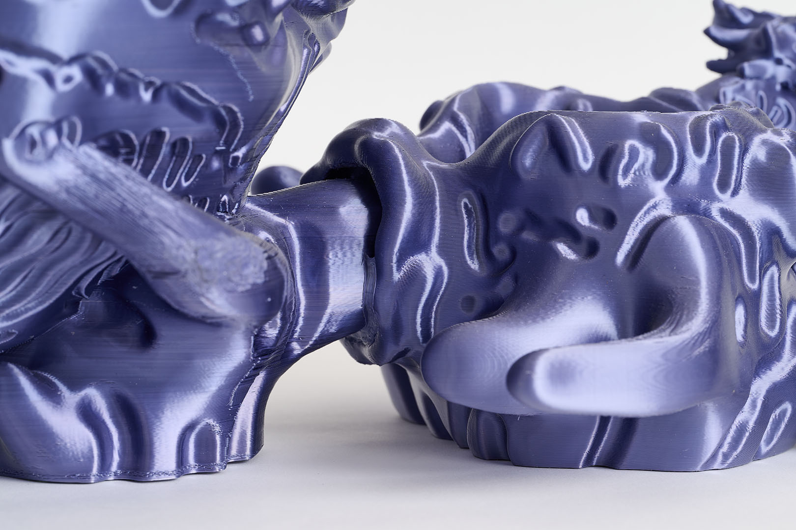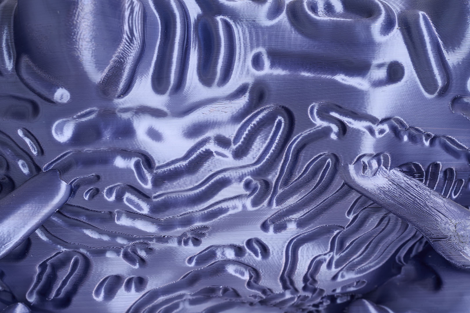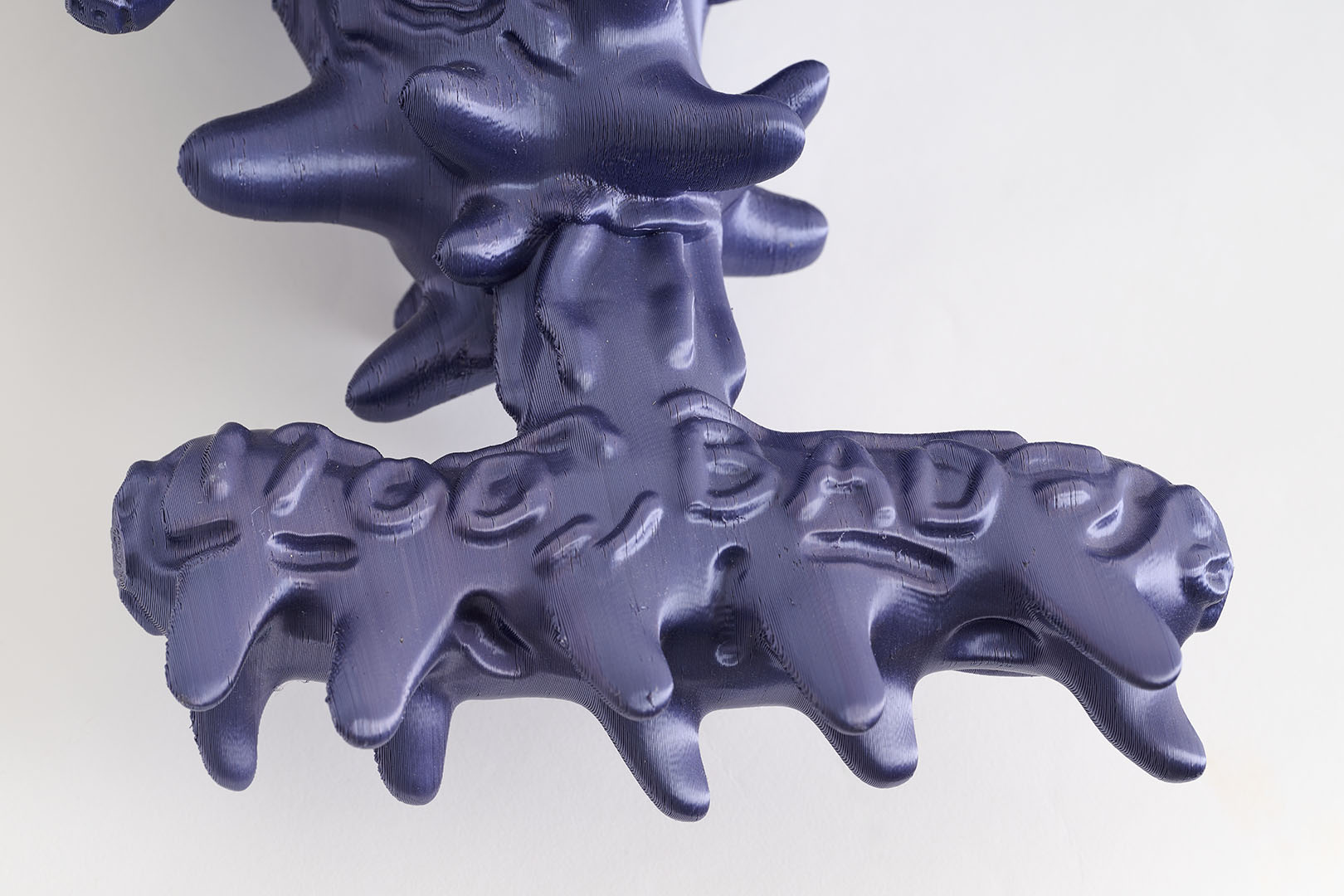 Identifying as an image maker, Audrey Large explores materiality across various mediums and dimensions. The Implicit Surfaces project leverages the digital realm as a space for creative freedom. The surface of each 3D model is hand-sculpted using a pencil on a graphic tablet. This technique produces bas-relief surfaces enriched with textures, shadows, and signs.