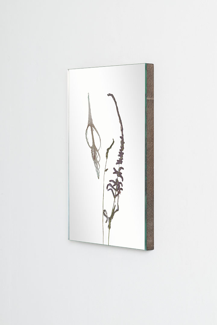 The collection builds on designs language that merges floral elements with an Art Deco influence, bridging the aesthetics of the 19th-century Venetian grotto style. This synthetic approach evolves toward a more direct and expressive gesture, emphasizing structural clarity and raw materials in a refined minimalism. The collection also expands on the exploration of herbarium mirrors, where botanical elements interact with reflective surfaces. Treated with acid, the mirrors capture floral imprints, subtly merging organic forms with their reflection. More than objects of utility, they become studies in form, blurring the boundary between materiality and illusion.