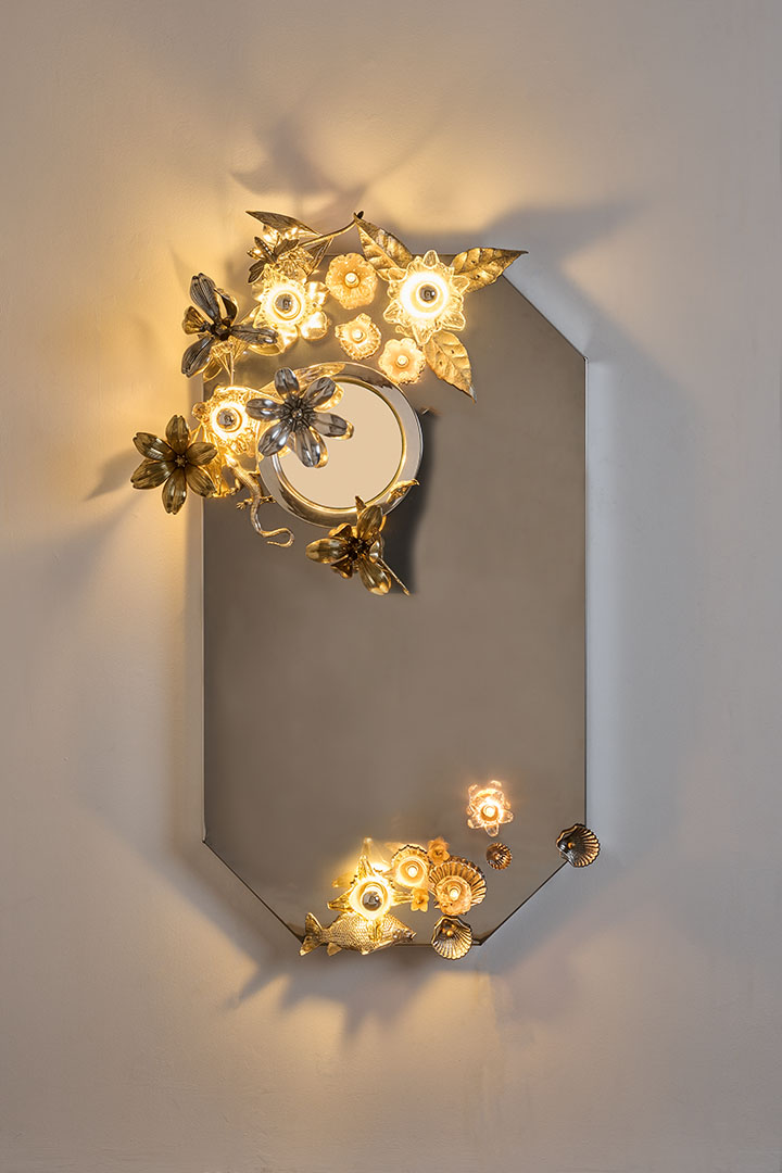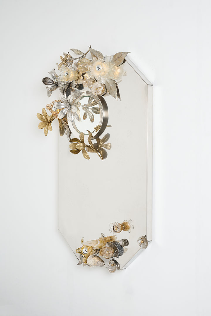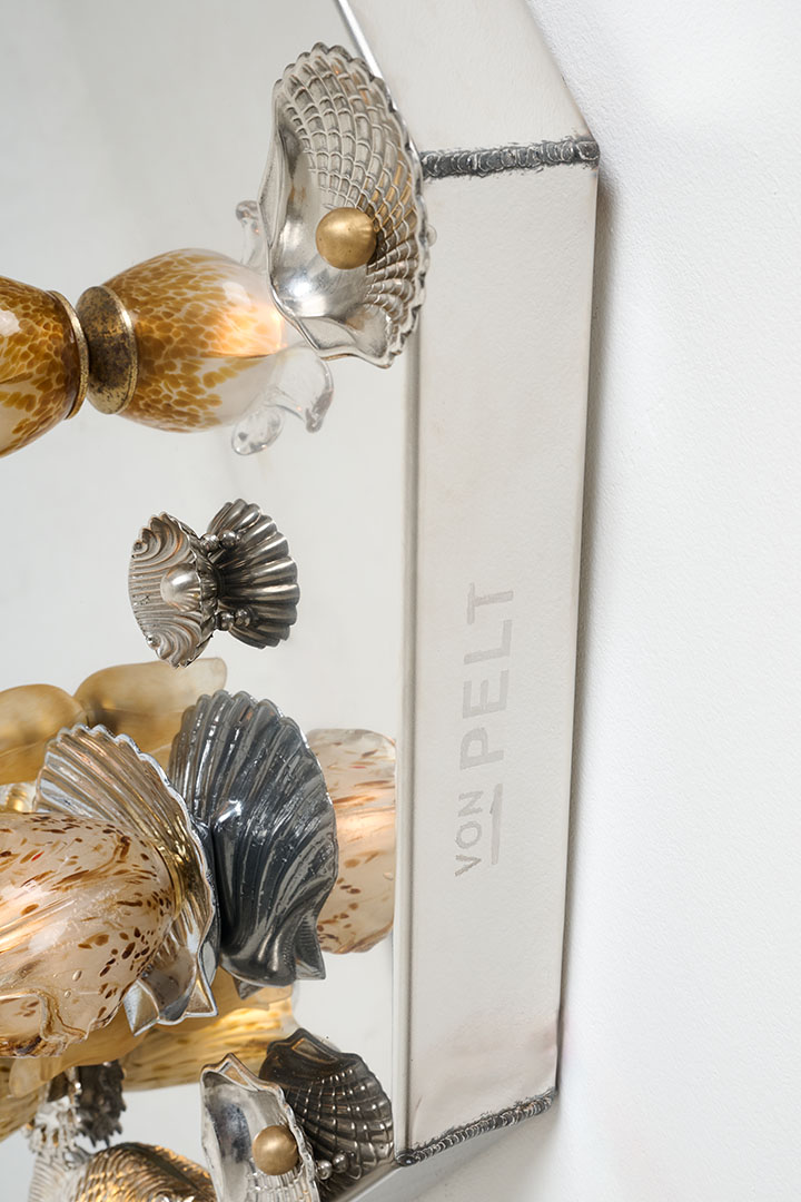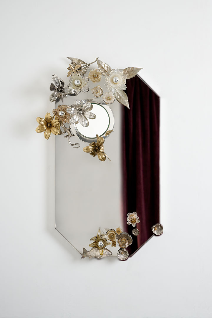 Designed by Von Pelt Atelier and crafted in Spain in 2026, Mirror Vanitas reinterprets the silver-plated decorative objects that filled many Spanish homes between the 1950s and 1970s. Once symbols of aspiration—tea services, trays and ornamental figures displayed behind glass—these objects are revived as functional art. Composed of silver-plated metal and Murano glass, the mirror evokes the theatrical richness of still-life traditions associated with Benvenuto Cellini, Giuseppe Arcimboldo and Albrecht Dürer. Through light and reflection, once-silent ornaments return to life, carrying their histories into a new luminous presence.