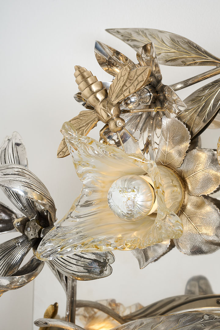 Silver plated metal, murano glass