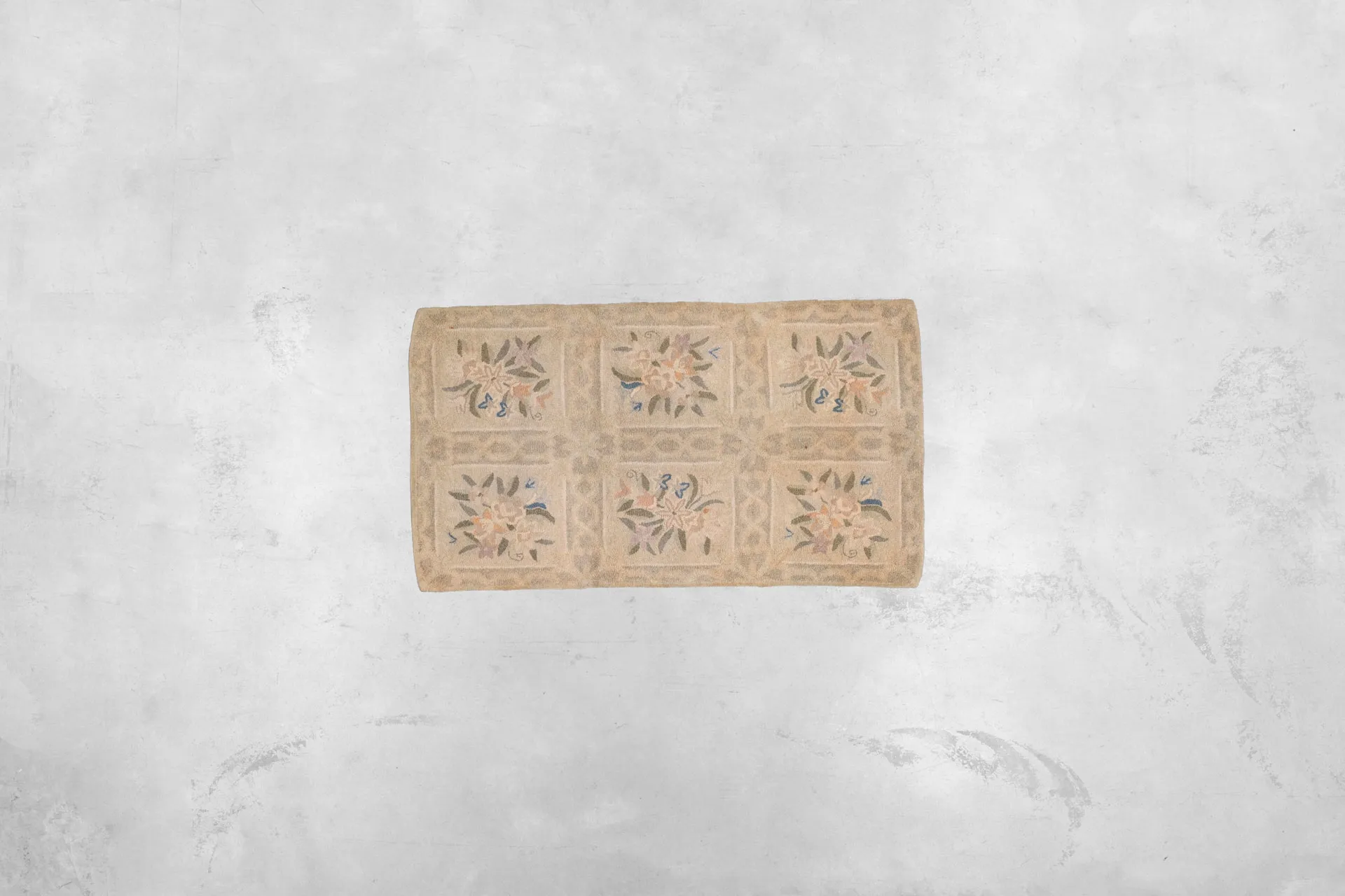 Crafted in early 20th-century USA, this antique carpet showcases an exquisite craftsmanship. With hand hooked technique and exquisite decoration, it stands as a timeless statement piece, bringing elegance to any environment.