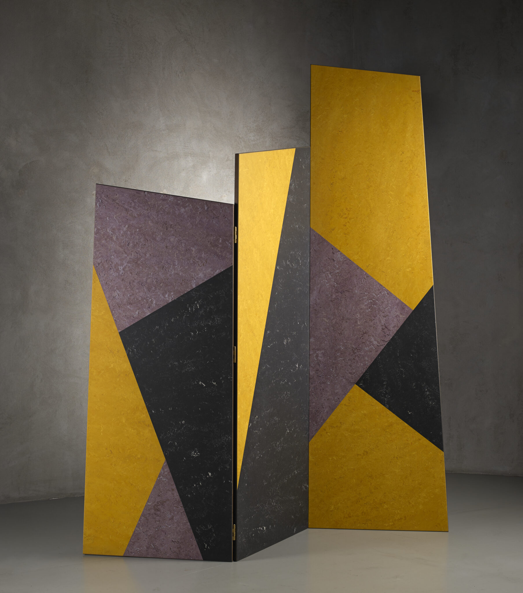 The geometric and polygonal shapes characterize the Paraventissimo series, designed by Gamper in 2014. This collection of screens masterfully combines the precision of sharp angles with bold, striking forms, creating dynamic visual compositions that seamlessly blend art with function. Each piece acts as both a sculptural object and a practical divider, using geometry to shape and define space.