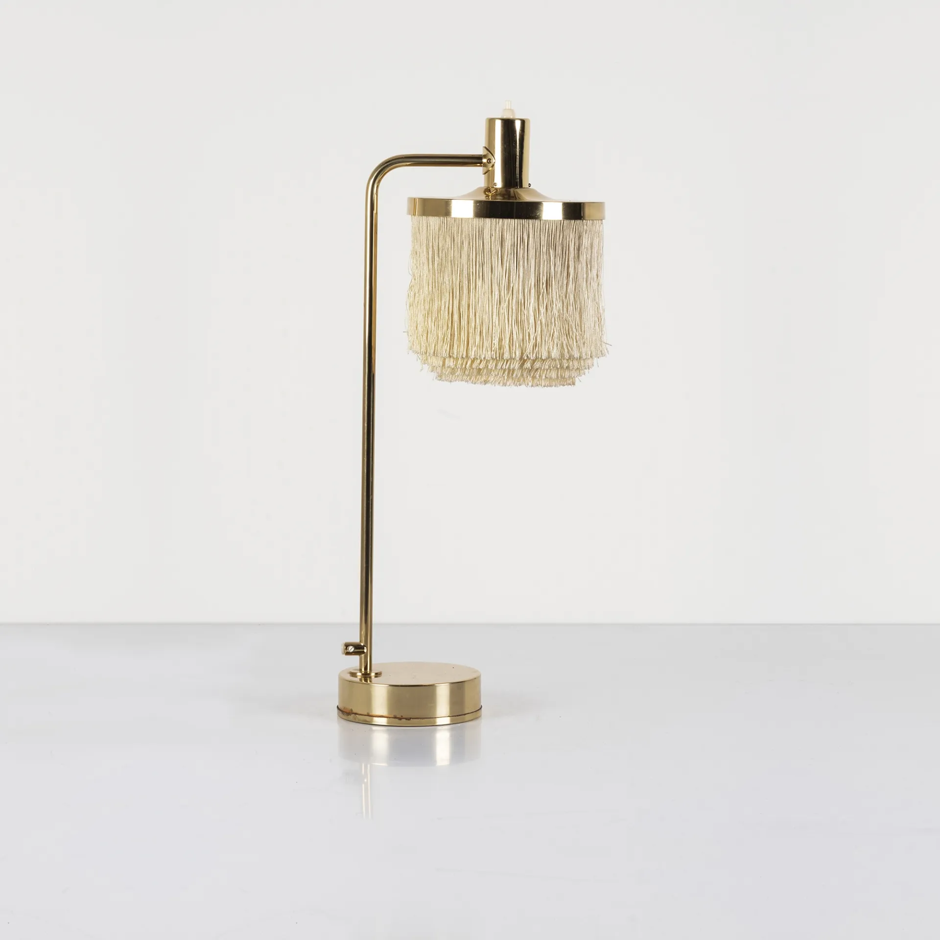 Manufactured by AB Markaryd in 1967, this table lamp reflects Hans Agne Jakobsson’s mastery of lighting design. Designed for a Swedish church, its brass structure and silk fringes create a soft, atmospheric glow, embodying the timeless elegance of Scandinavian modernism.