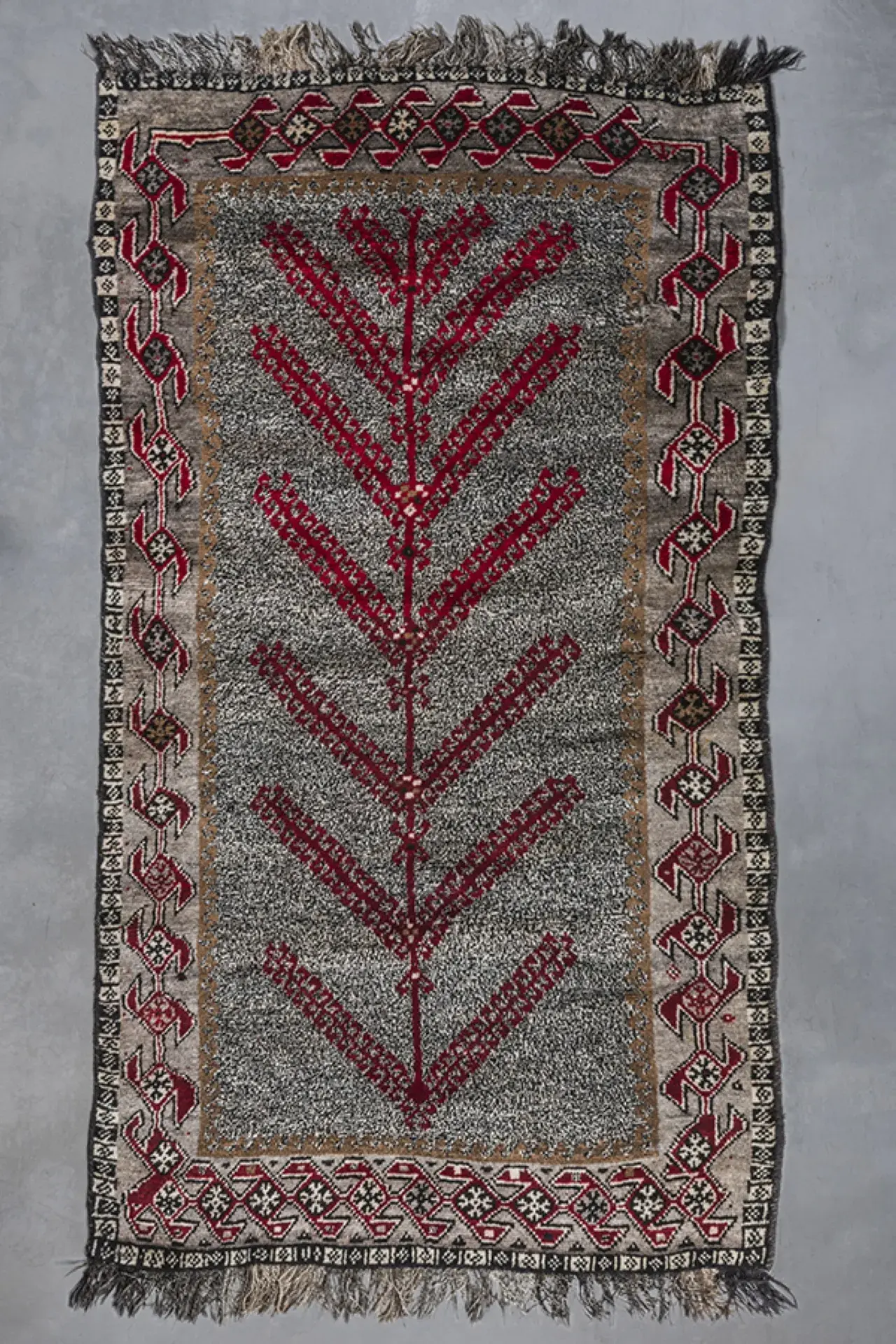 Crafted in Iran in the first decades of the 20th century, this Gabbeh carpet reflects the rich heritage of Persian weaving traditions. Featuring harmonious geometrical motifs and exquisite hand knotted technique, it stands as a timeless statement piece, bringing elegance to any environment.