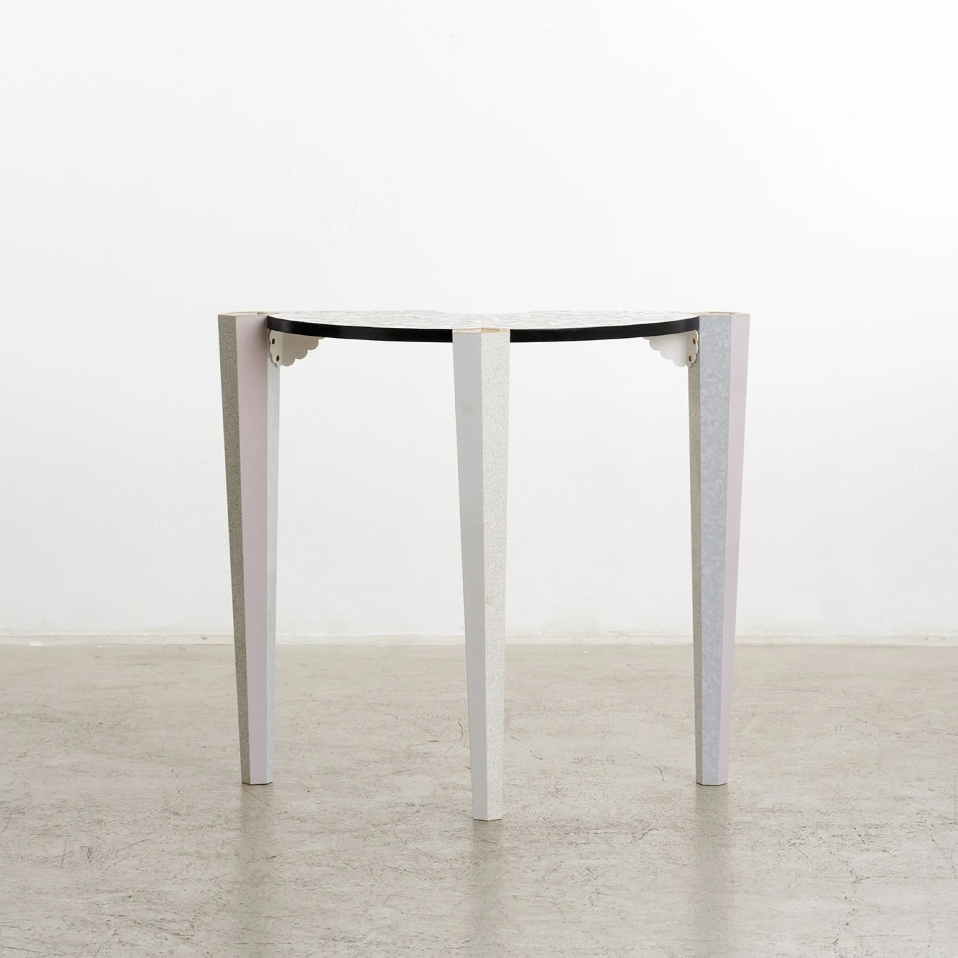 Play Time is a collection of inter-stacking tables that blends elegance with playfulness. Inspired by an antique Austrian bench, the design focuses on tapered hexagonal legs crafted with skillful techniques. The laminate tabletops crafted in collaboration with Abet Laminati feature dynamic, evolving patterns—ranging from Elizabethan collars to Deco architecture—creating a ‘Spaghetti Junction’ of inlays and texture.