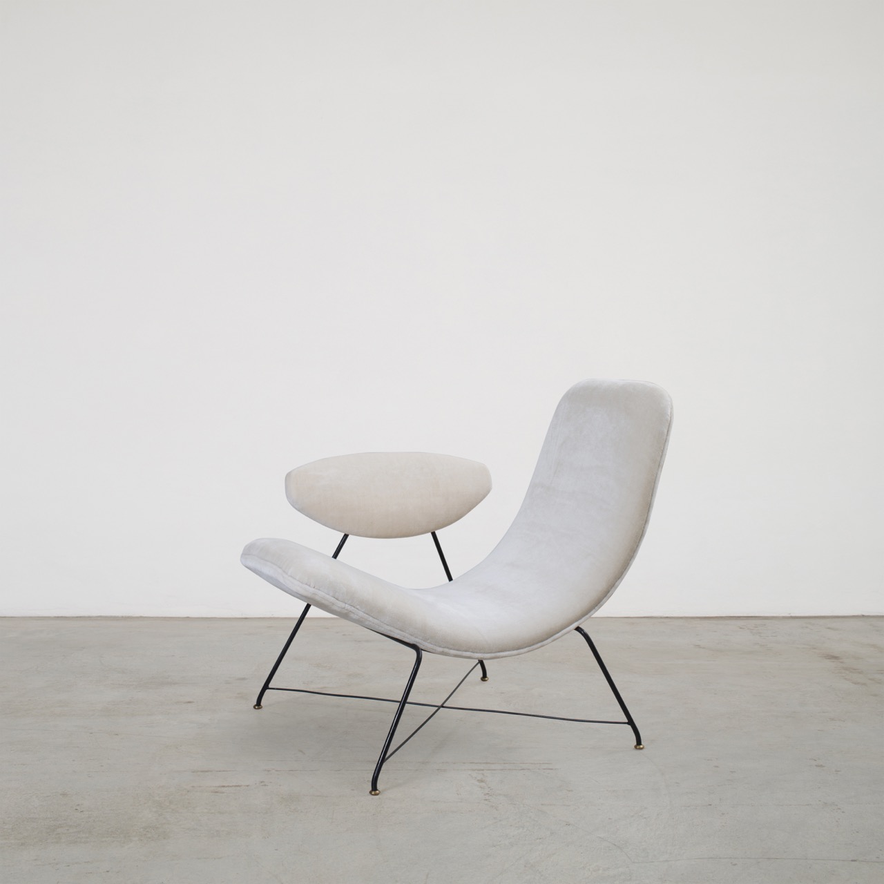 Manufactured in Brazil in 1955, Reversível armchair exemplifies the pioneering design philosophy of Martin Eisler and Carlo Hauner. Featuring an asymmetrical, curved seat, the armchair combines an unconventional, dynamic shape with a visionary innovation in terms of functionality. The result is a timeless piece that effortlessly adapts to any environment.