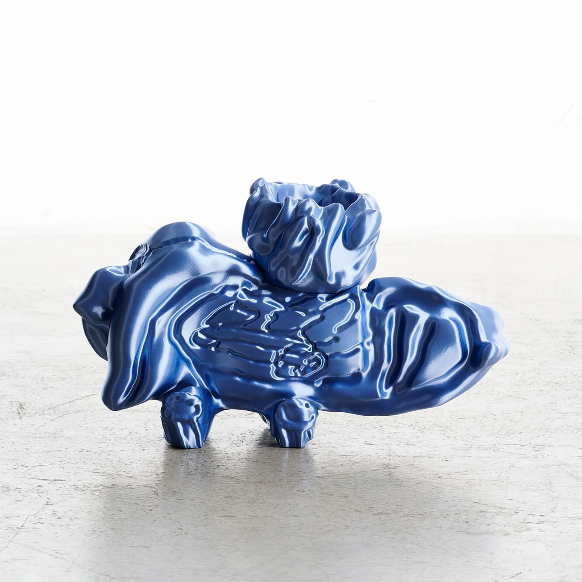 Constantly alluding to a possible movement, Audrey Large’s iridescent 3D-printed objects articulate the metaphors of liquidity. As immaterial as the digital images that overflow on the Internet, Large’s objects remain ambiguous and unfathomable because of the process that brought them into being.