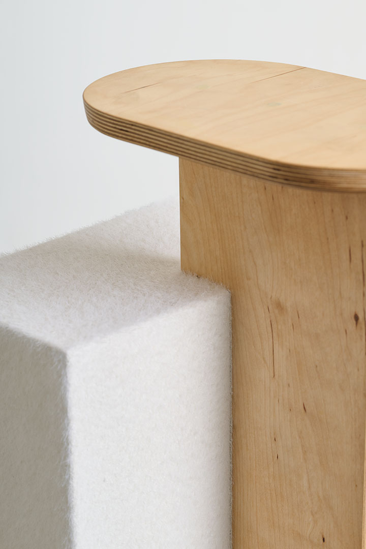 Birch plywood, foam, polymer compound, pigments, stainless steel