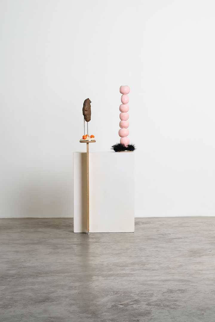 Crafted in bronze, Jonathan Trayte’s creations combine his broad experiences in other fields—including as a chef and foundry metal worker—with his keen eye for finding the obscure aspects of daily life. Each piece is unique and features a glossy synthetic skin of paint that confer a pop status and an almost edible quality. Reminiscent of food packaging and advertising, the vivid color and motifs exude a tropical vibe, like wild, surreal facsimiles of fruits and vegetables.