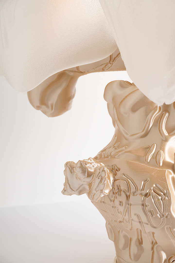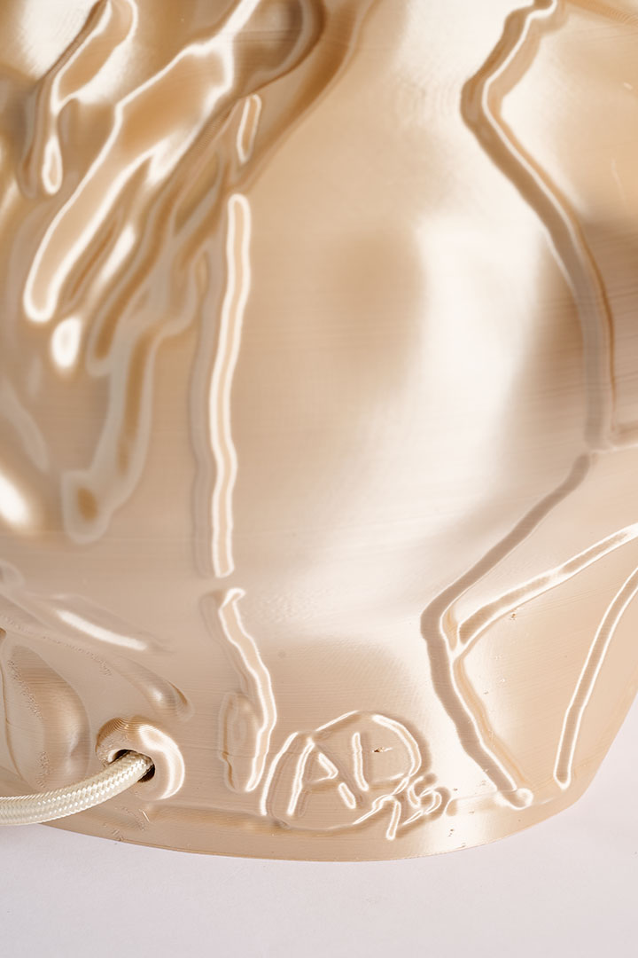 At the intersection of art and design, Audrey Large’s research explores the potential of image manipulation processes applied to everyday objects, aiming to define a new materiality. By merging graphic, manufacturing, and digital production techniques, her work challenges traditional perceptions of form and substance. Entirely created through advanced 3D printing techniques, these pieces blur the boundaries between art and design, prompting reflection on the impact of new technologies on contemporary aesthetics. In an increasingly digital world, her work serves as a testament to how design can be reimagined through emerging digital methodologies.