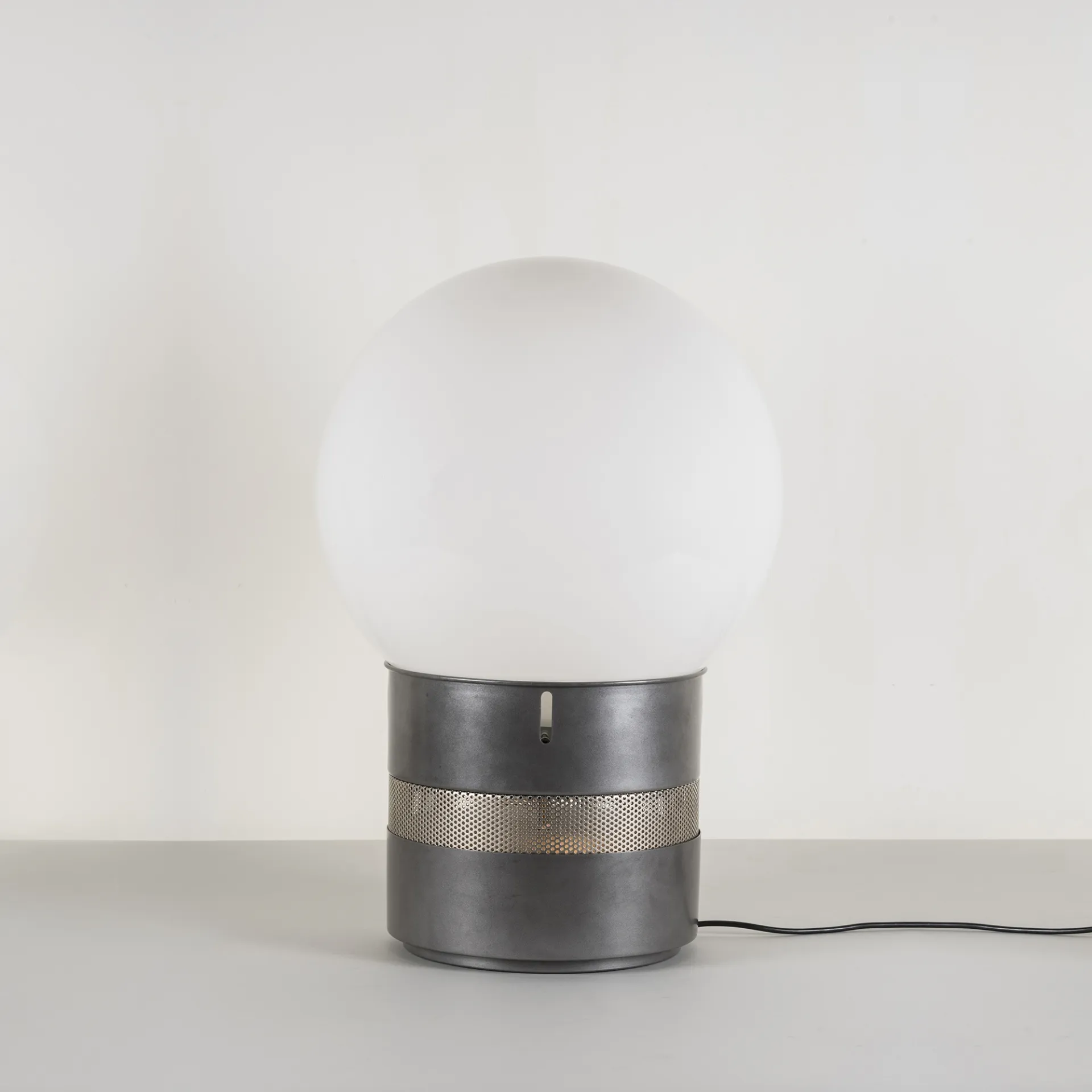 Manufactured by Artemide in the 1970s, this mod. Mezzo Oracolo table lamp stands a stunning testament of Gae Aulenti’s enduring collaboration with the Italian brand. Inspired by the concept of architectural design, the Italian designer combined bold, captivating lines and shapes, reimagining traditional aesthetics to create an elegant and timeless piece.