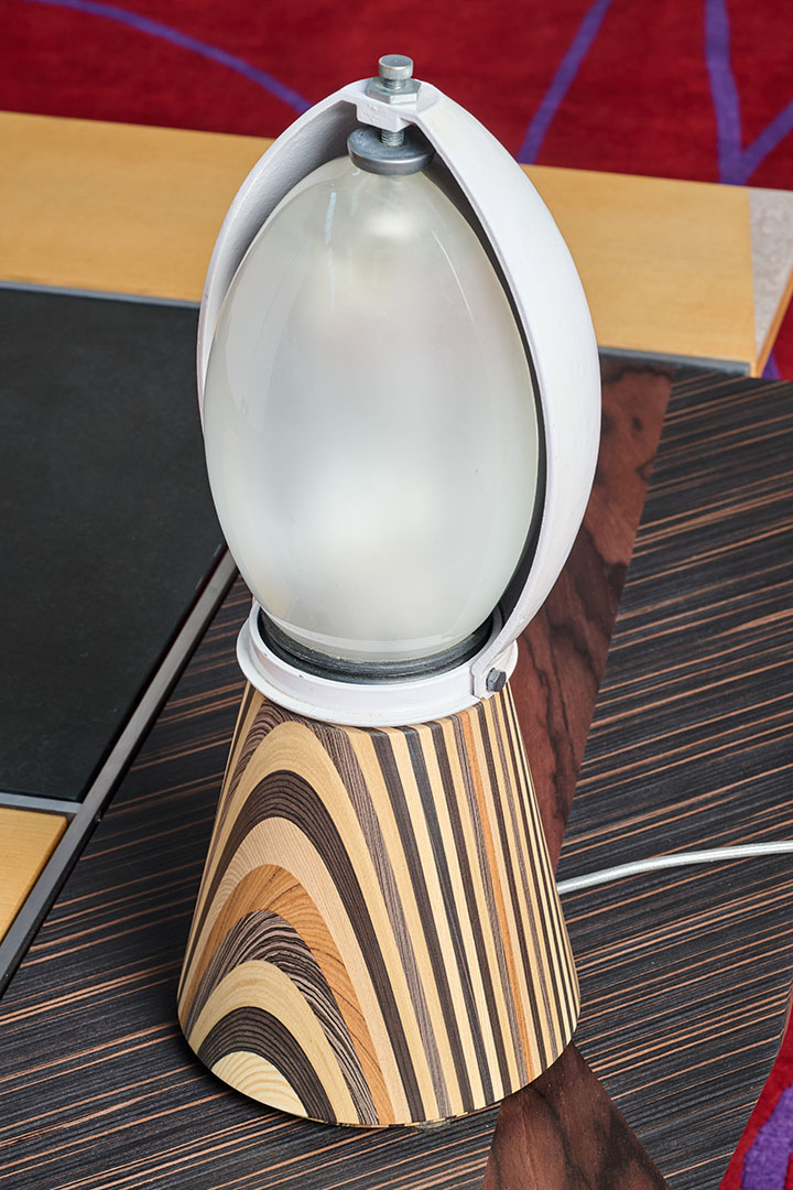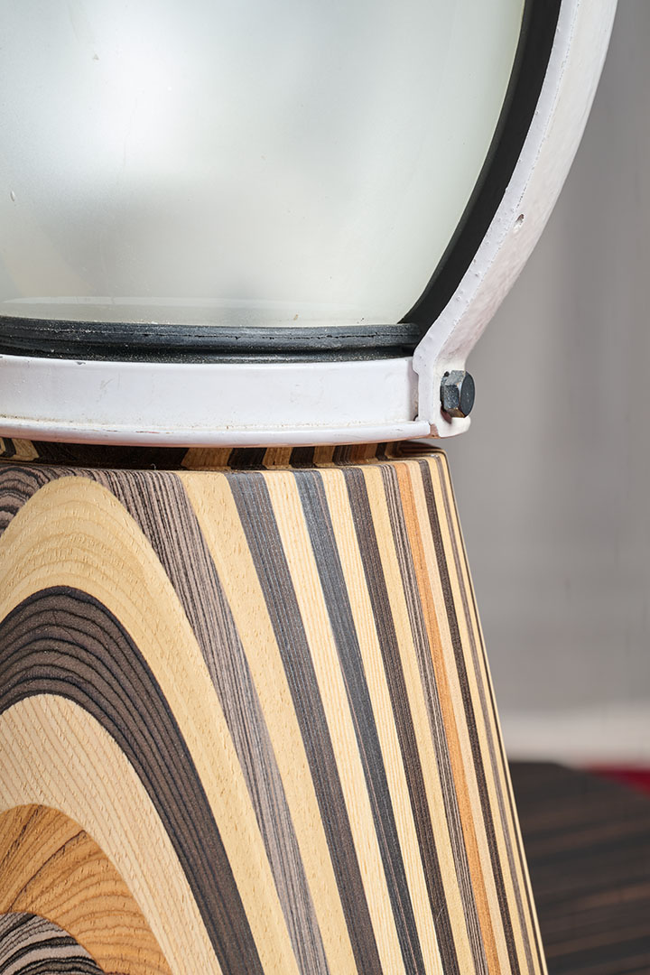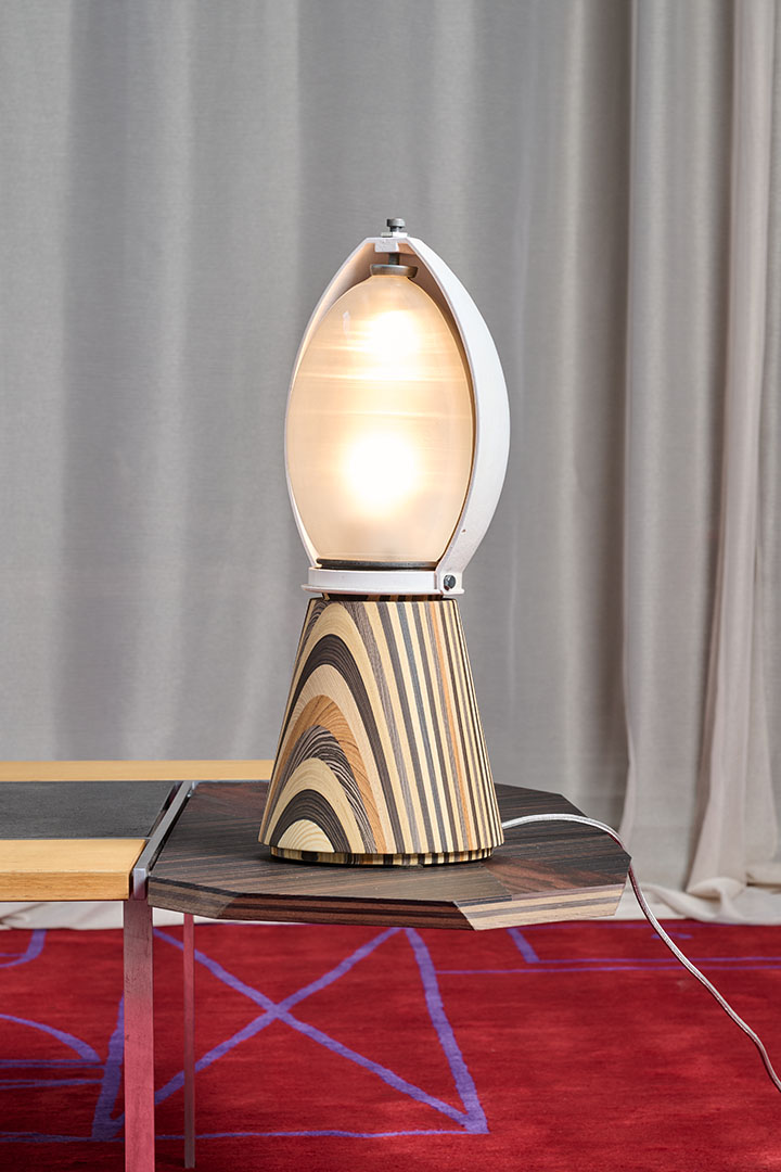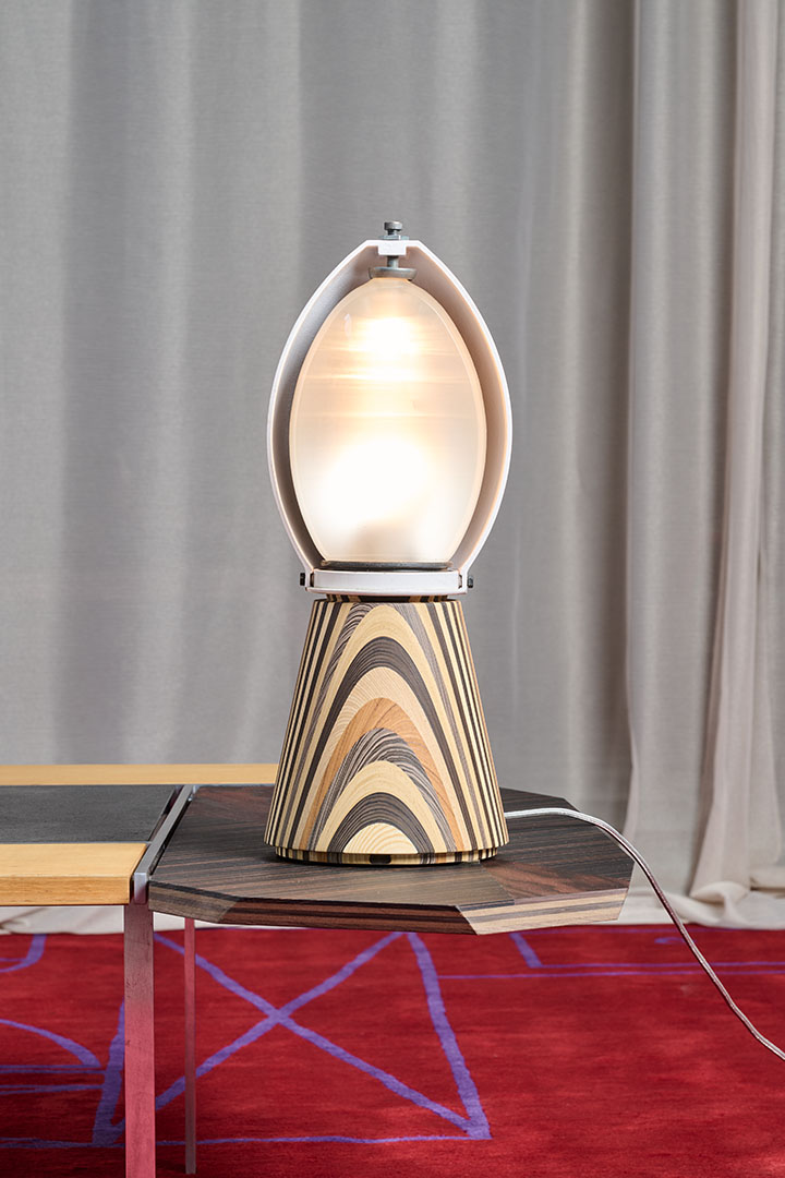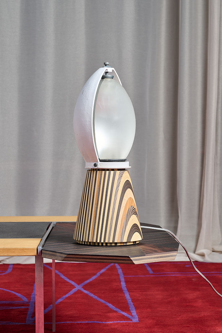 Redesigned by Martino Gamper during the live performance celebrating the tenth anniversary of Nilufar Depot, the piece originates from a vintage swiveling lamp by Franco Albini and Franca Helg, originally produced by Arteluce in 1962. Without altering its function, Gamper introduces new, handcrafted wooden details that spark a dialogue between past and present, enhancing the original proportions and identity through a contemporary lens.