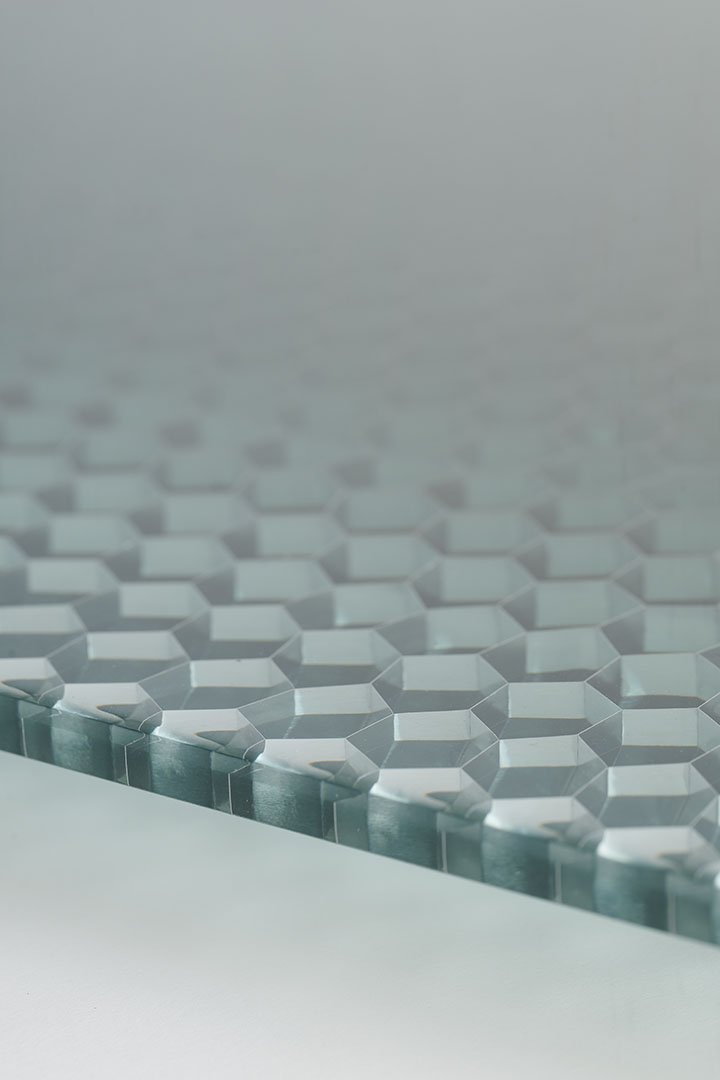 Designed by Marco Lavit in collaboration with Azimut Design, this tray explores a new frontier in material innovation. Crafted in amber epoxy resin and aluminum honeycomb, the piece emerges from an advanced research process that structurally integrates the two elements into a single composite material. Known for its hexagonal cellular structure, honeycomb offers exceptional strength and lightness. Encased through a controlled epoxy casting process, the structure becomes stabilized and luminous, revealing metallic reflections and warm amber tones. The result is a surface that appears almost liquid, where technical precision and material depth merge into a refined architectural presence.