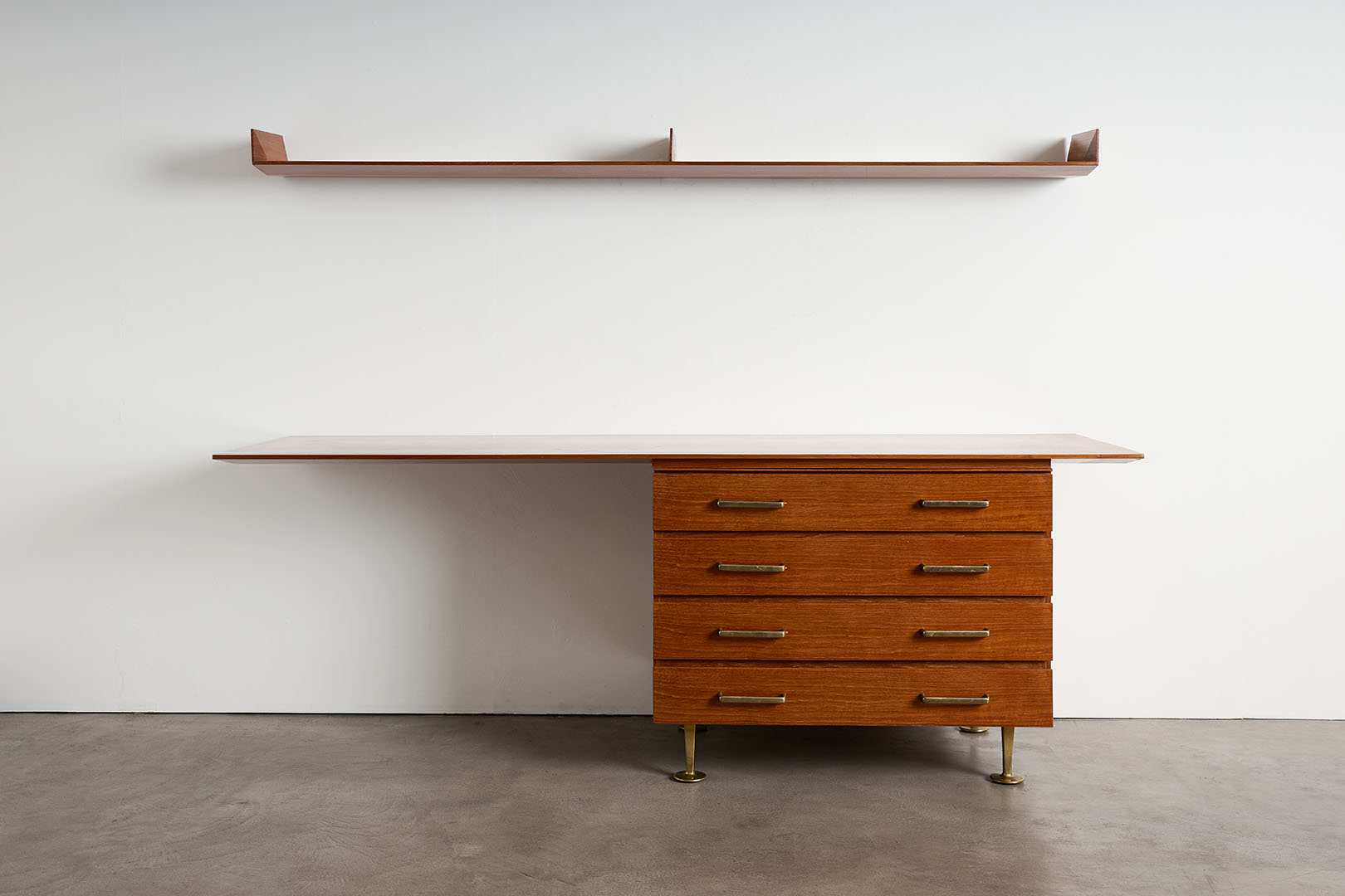 Unique drawers unit with desktop and wall-mounted shelf