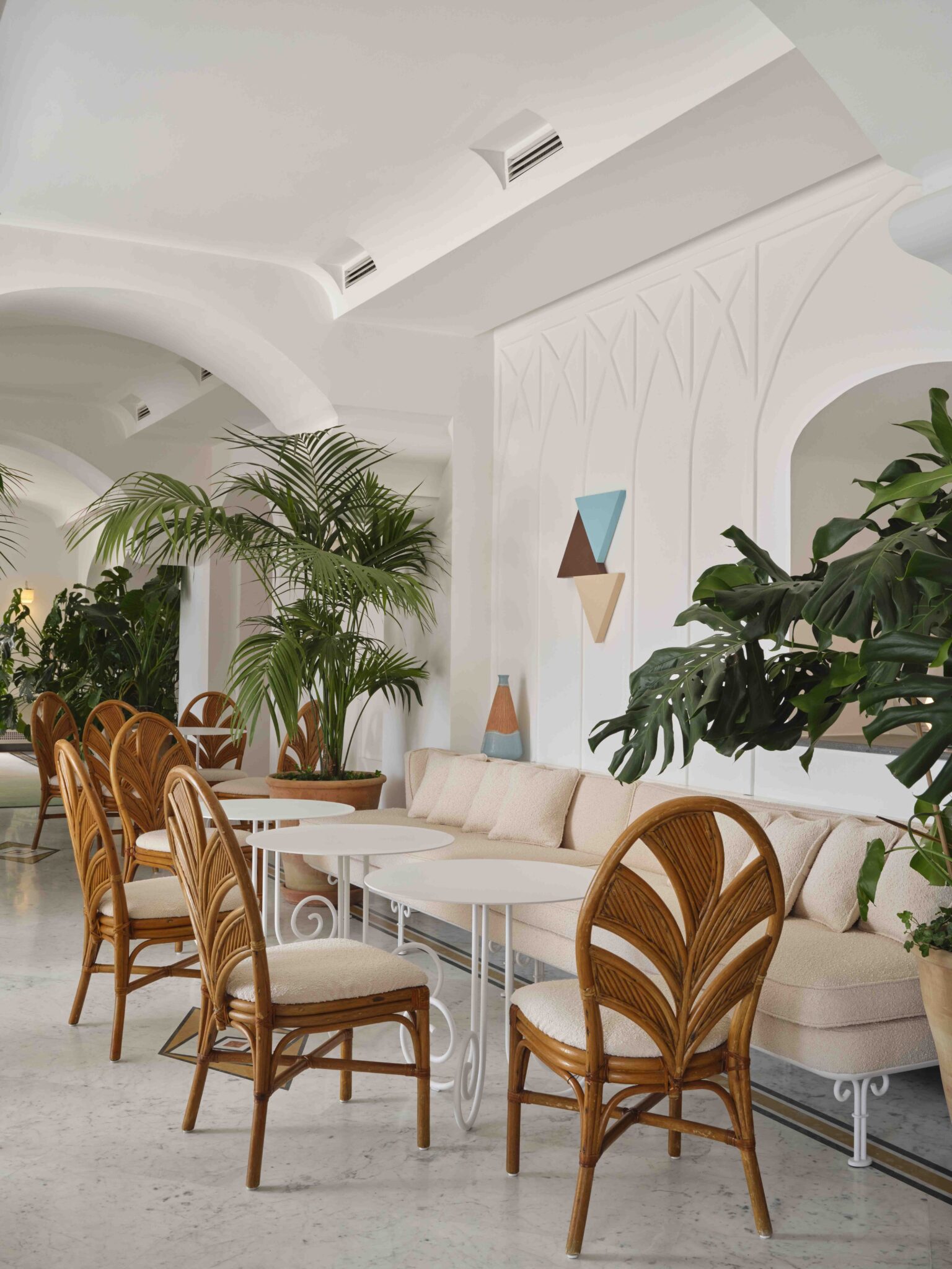 At the heart of the project, Nilufar pieces bring Brazilian 1950s design into the lobby, creating a dialogue with the palace’s Moorish architecture and turning the space into an emotional prologue for guests. The journey continues in the Caffè dell’Arte, where mid-century seating, handcrafted iron-and-glass tables, and thoughtfully placed plants evoke the intimate elegance of a Mediterranean garden. Nilufar’s curated vintage design enriches the interiors, merging history, art, and contemporary vision into a harmonious, immersive experience.